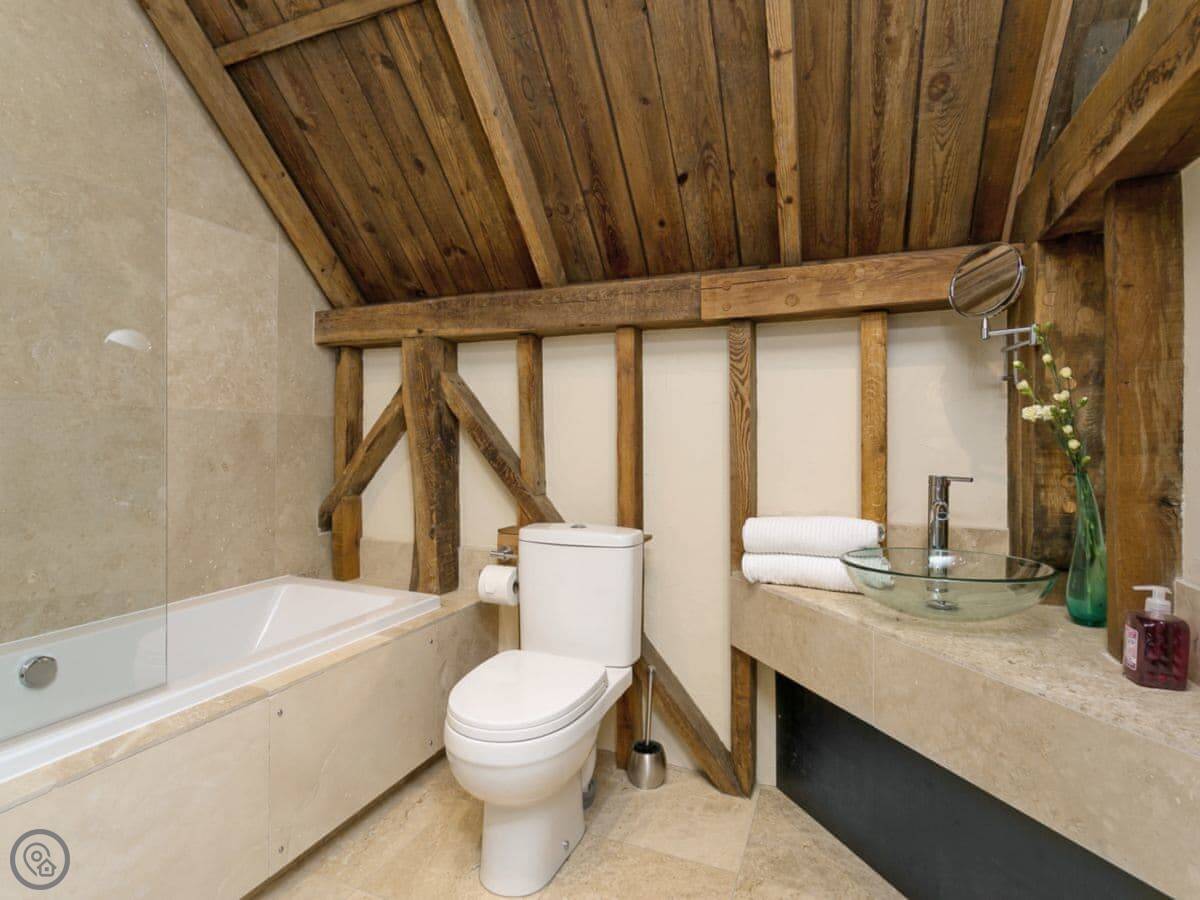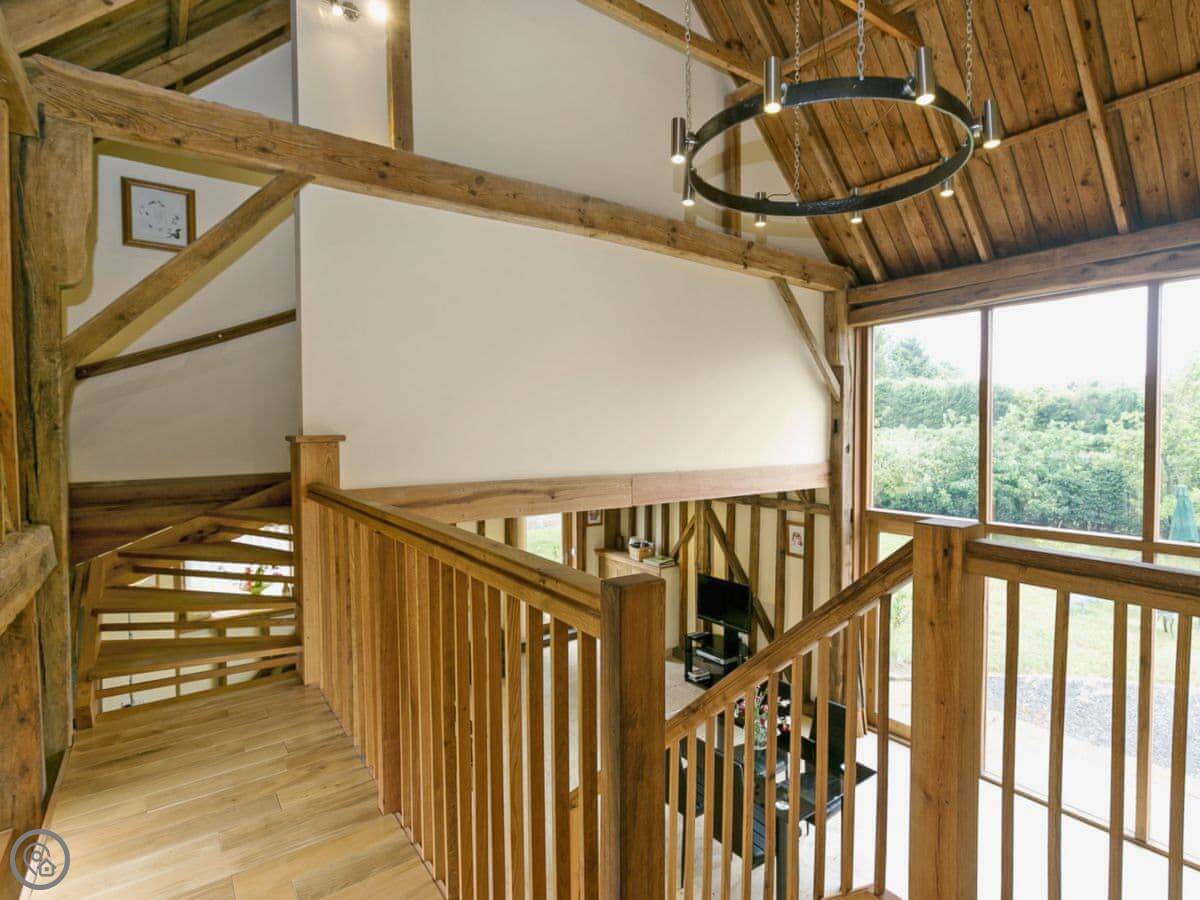 It sleeps four. Two bedrooms, both with their own bathrooms. It's a 4 Star place, so it's well-equipped and comfortable. The stairs are a feature, they're open-tread oak, but they are quite steep. It's something to be aware of.