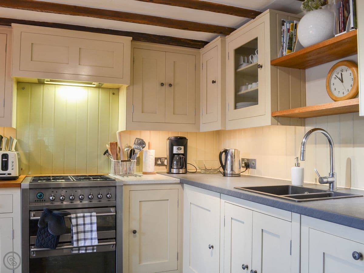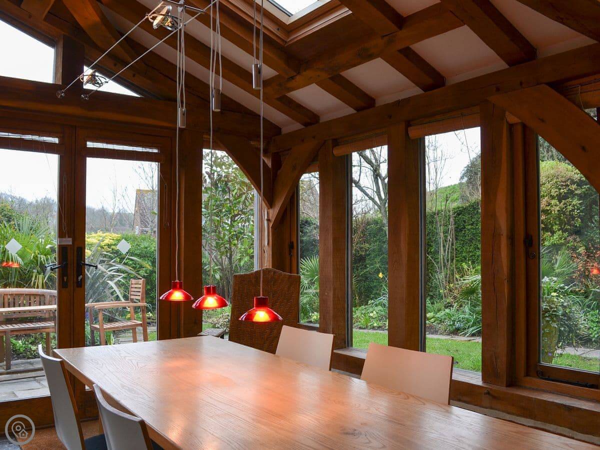 The kitchen is traditional but has a dishwasher. There's a wood burner in the sitting room. The conservatory is where you eat.