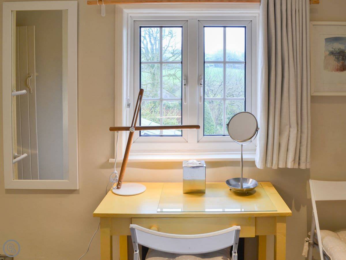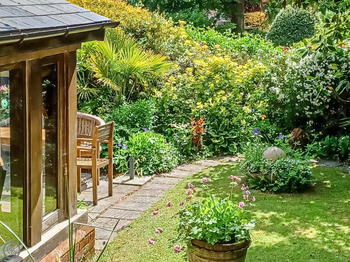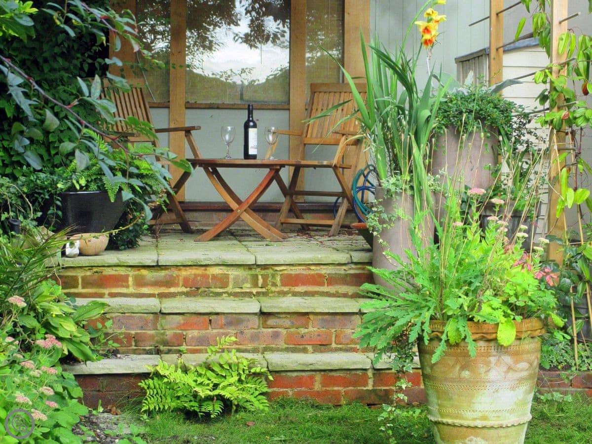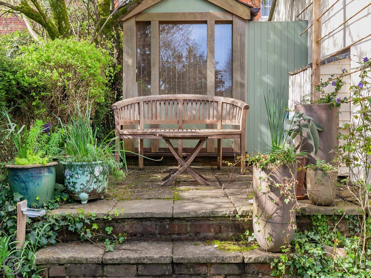 The garden is quiet and enclosed. You get a table and chairs, a barbecue, and a couple of loungers. It looks out over fields. You'll hear a lot of birds. Pheasants in the day, owls at night. No traffic.