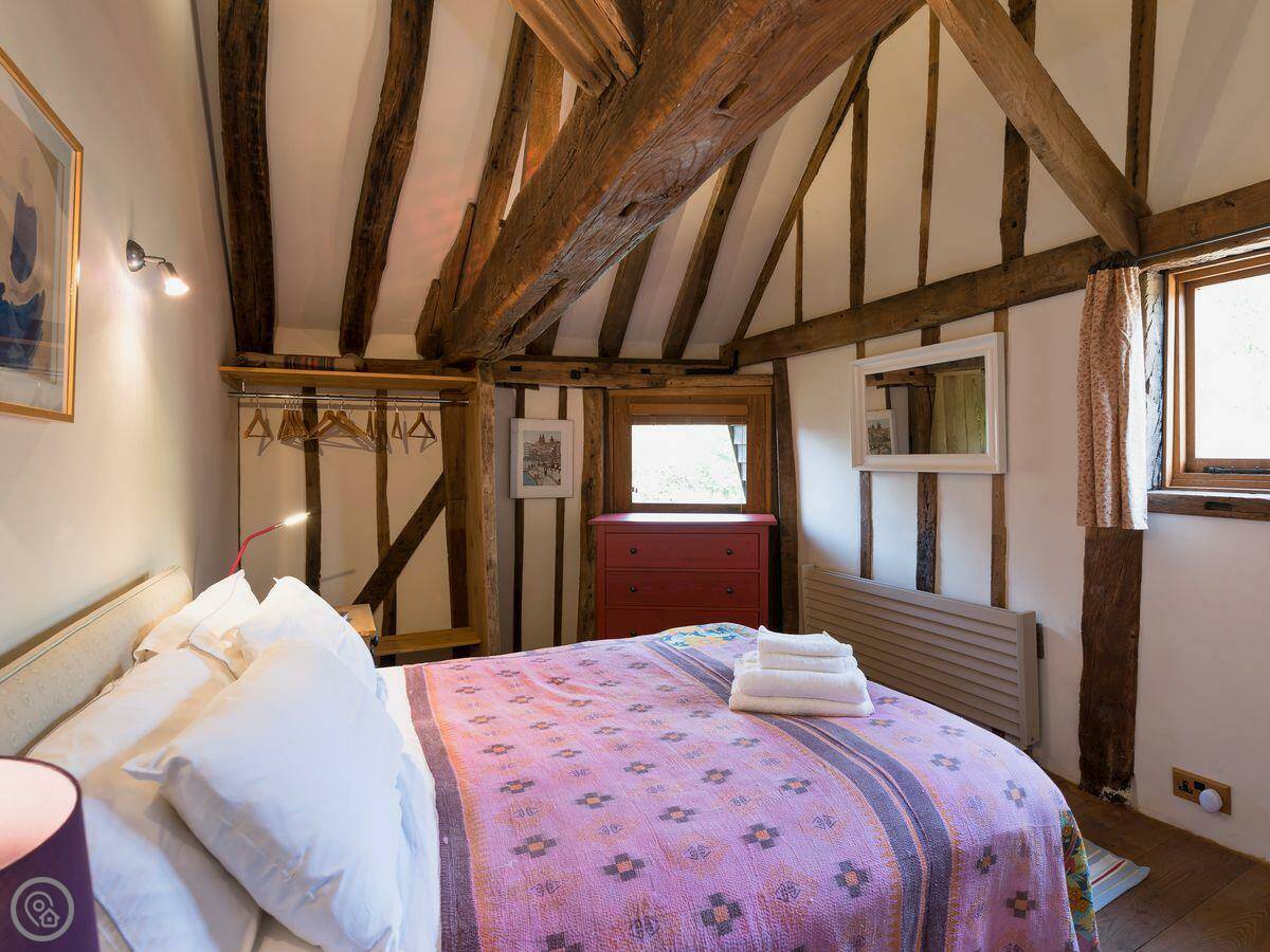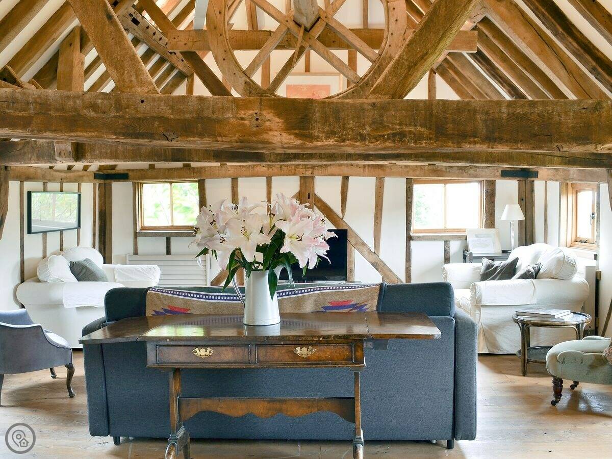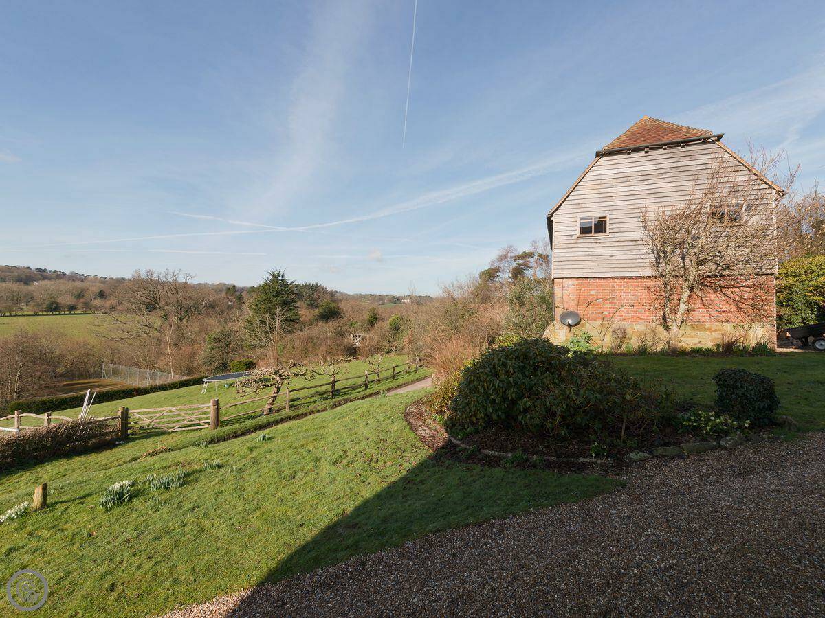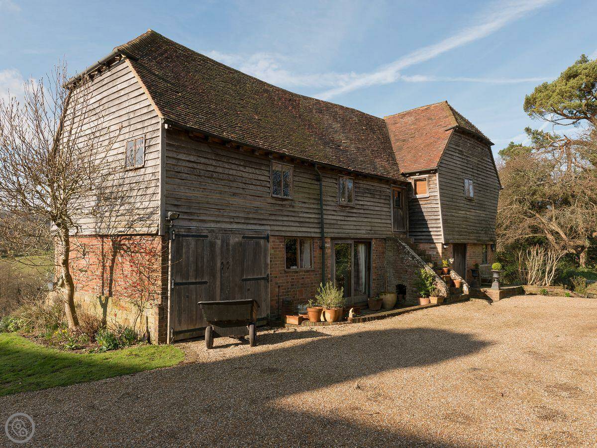 Originally used to dry hops grown locally, which were then sent to the brewer’s to be used for flavouring beers. Sadly, the twin roundels and the cowl at the top of the kiln has long since disappeared, but the main part of the barn, which was used for the actual storing of hops prior to drying, still has an oak winch in the living area as a reminder of its working past. Situated adjacent to the owner’s 16th-century house built by a Wealden ironmaster, on a delightful, rural, single track lane, guests can access the orchard, tennis court and owner’s paddocks which slope down to the stream at the bottom of the valley.