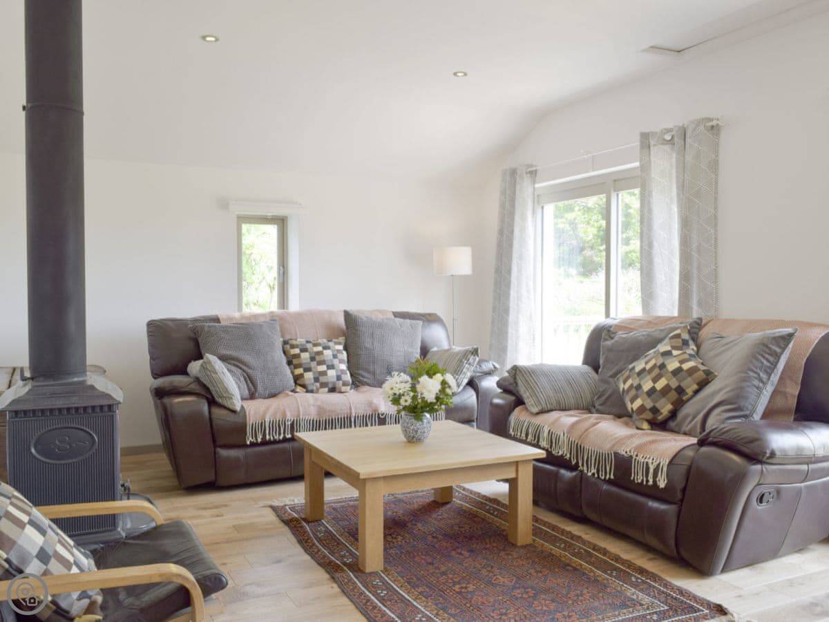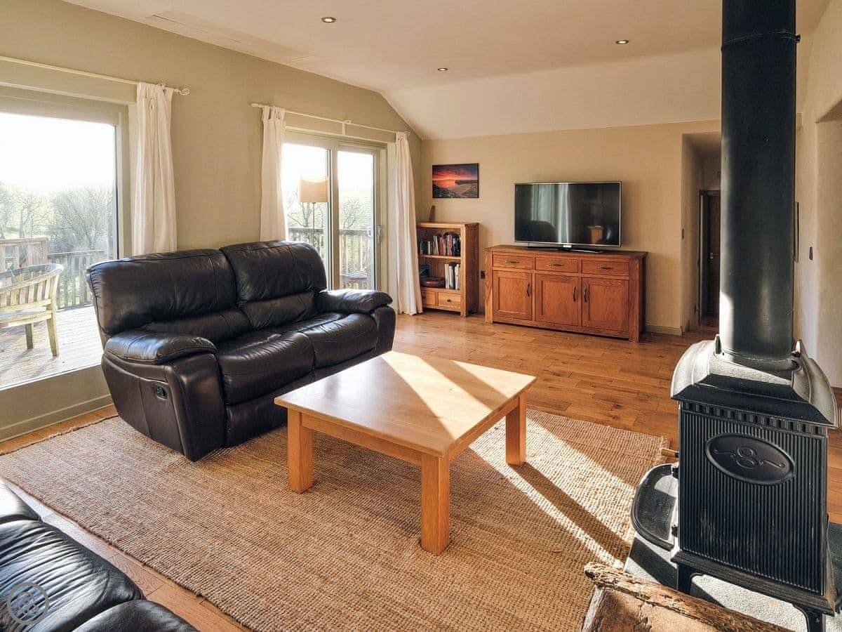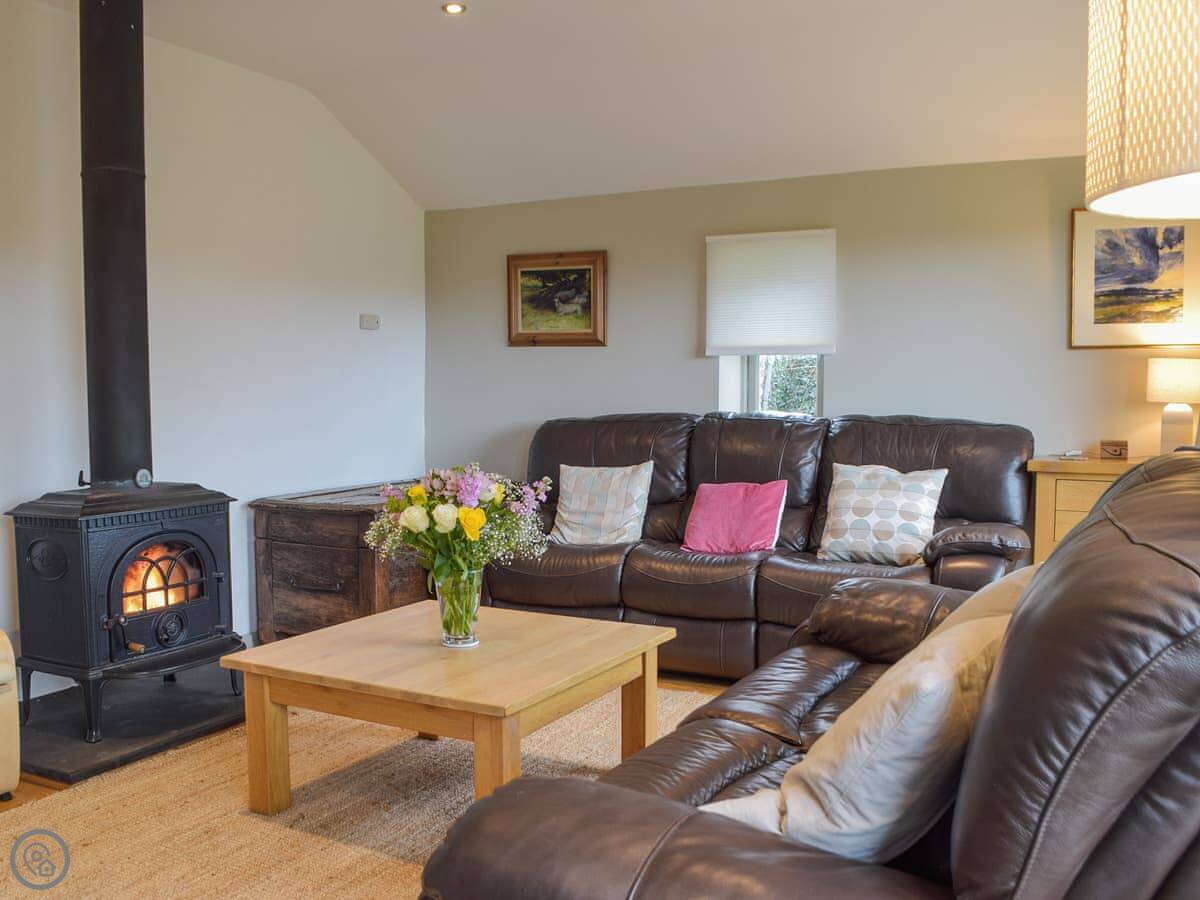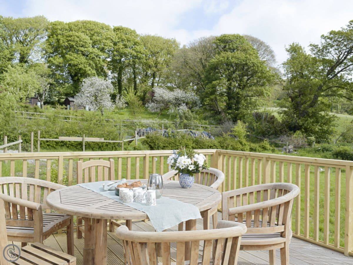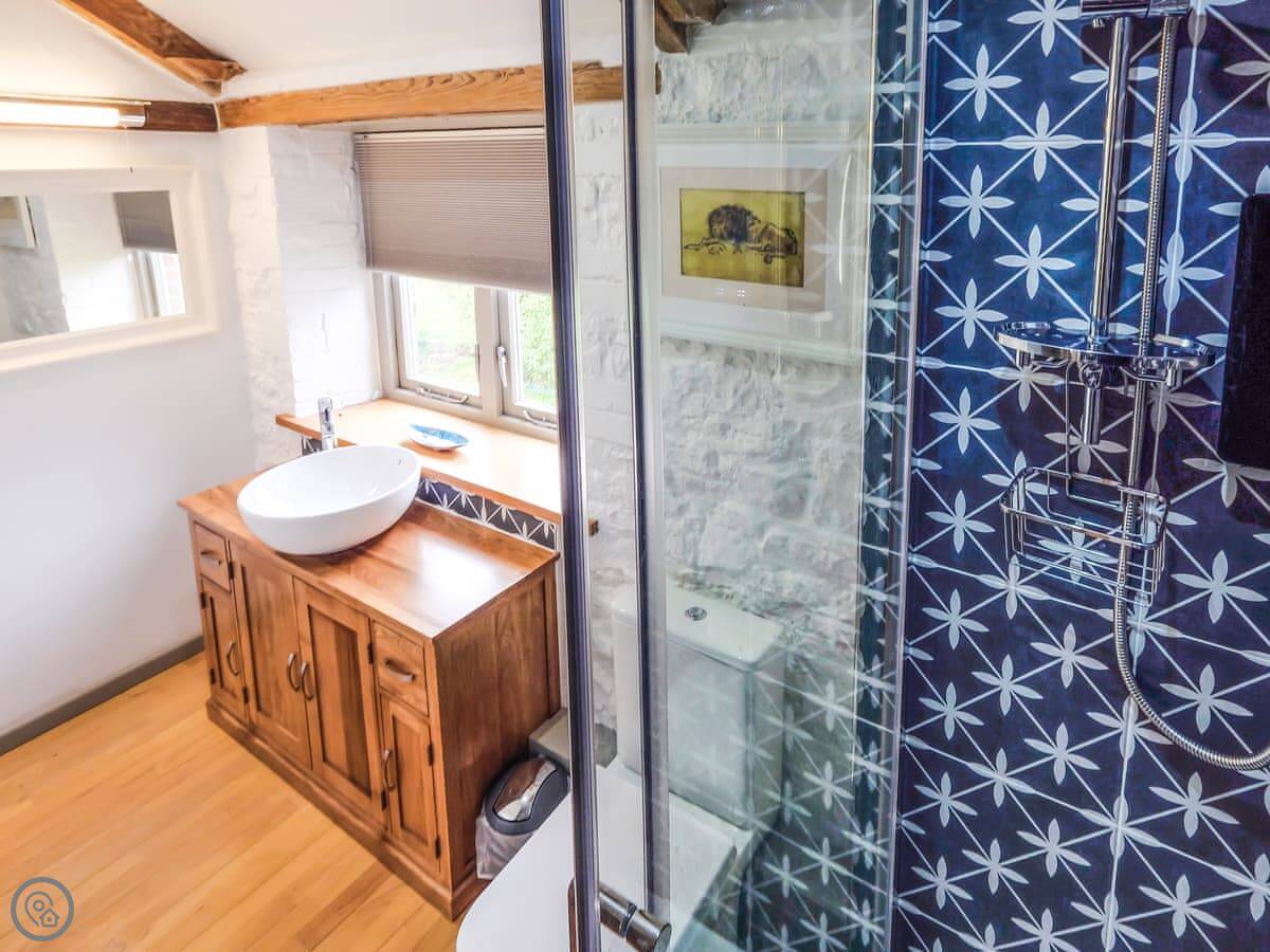 Sit back and relax by the warmth of the wood burner with a free and plentiful wood supply. This bright and airy space makes the perfect place to spend some quality time with your loved ones or catch up with your favourite show on the 49” Smart TV with Netflix. Prepare a tasty treat in the fully equipped farmhouse style kitchen, the dining area ideal for relaxed evenings of eating and chatting. Alfresco dining can be enjoyed on the large, decked veranda with superb valley views. Boasting three bedrooms, a magnificent kingsize bedroom with en-suite, a further bedroom with kingsize bed and wonderful valley views and the third bedroom having twin single beds. there’s plenty of space to have a good night’s sleep. Luxuriantly appointed with 3 separate bathrooms which consist of a well-equipped shower room, a bathroom, with shower over bath, and an en-suite shower room. All bathrooms have liquid dispensers filled with “faith in nature” cruelty free shampoo and body wash. Steps from the terrace lead down to a large, enclosed garden where you can feel reassured your dogs will be secure.