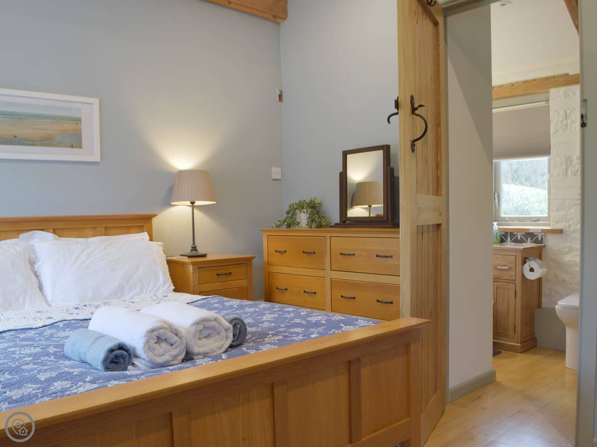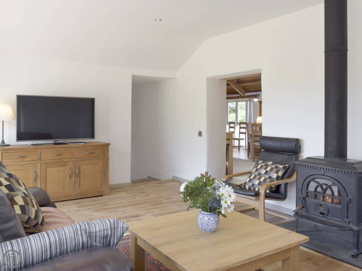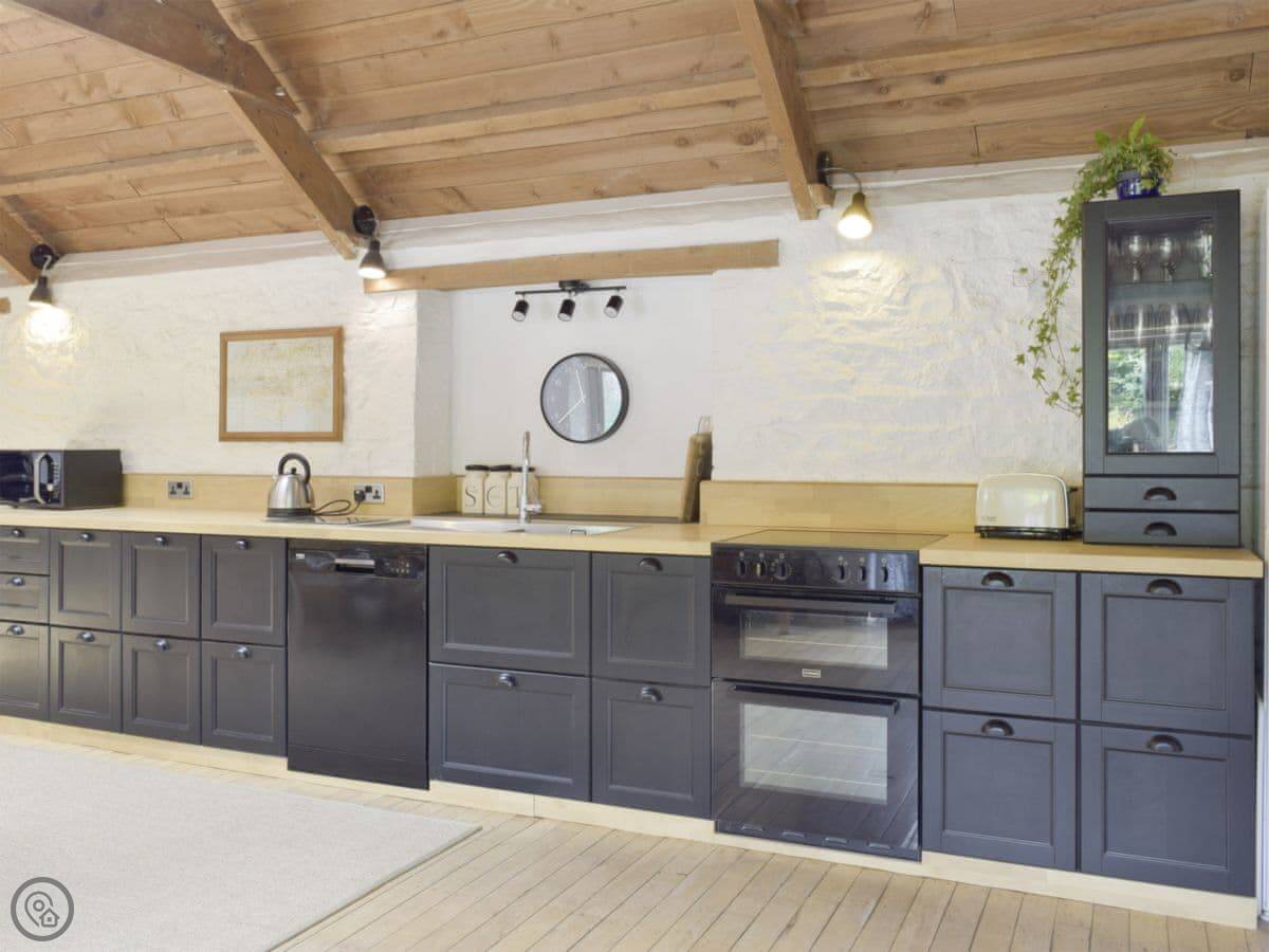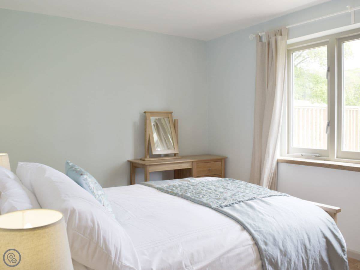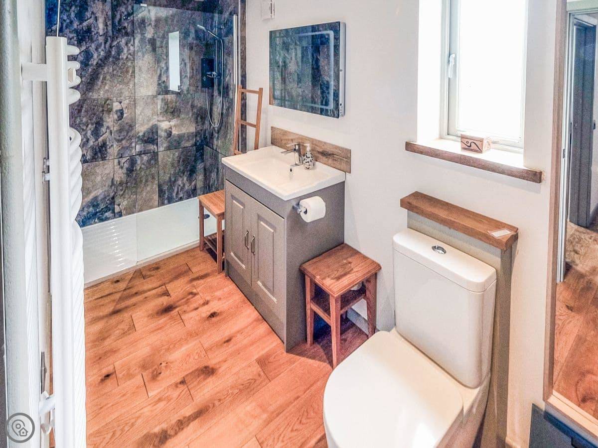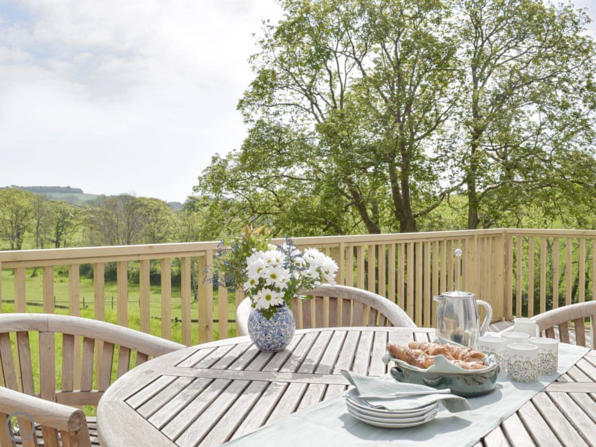 Sit back and relax by the warmth of the wood burner with a free and plentiful wood supply. This bright and airy space makes the perfect place to spend some quality time with your loved ones or catch up with your favourite show on the 49” Smart TV with Netflix. Prepare a tasty treat in the fully equipped farmhouse style kitchen, the dining area ideal for relaxed evenings of eating and chatting. Alfresco dining can be enjoyed on the large, decked veranda with superb valley views. Boasting three bedrooms, a magnificent kingsize bedroom with en-suite, a further bedroom with kingsize bed and wonderful valley views and the third bedroom having twin single beds. there’s plenty of space to have a good night’s sleep. Luxuriantly appointed with 3 separate bathrooms which consist of a well-equipped shower room, a bathroom, with shower over bath, and an en-suite shower room. All bathrooms have liquid dispensers filled with “faith in nature” cruelty free shampoo and body wash. Steps from the terrace lead down to a large, enclosed garden where you can feel reassured your dogs will be secure.