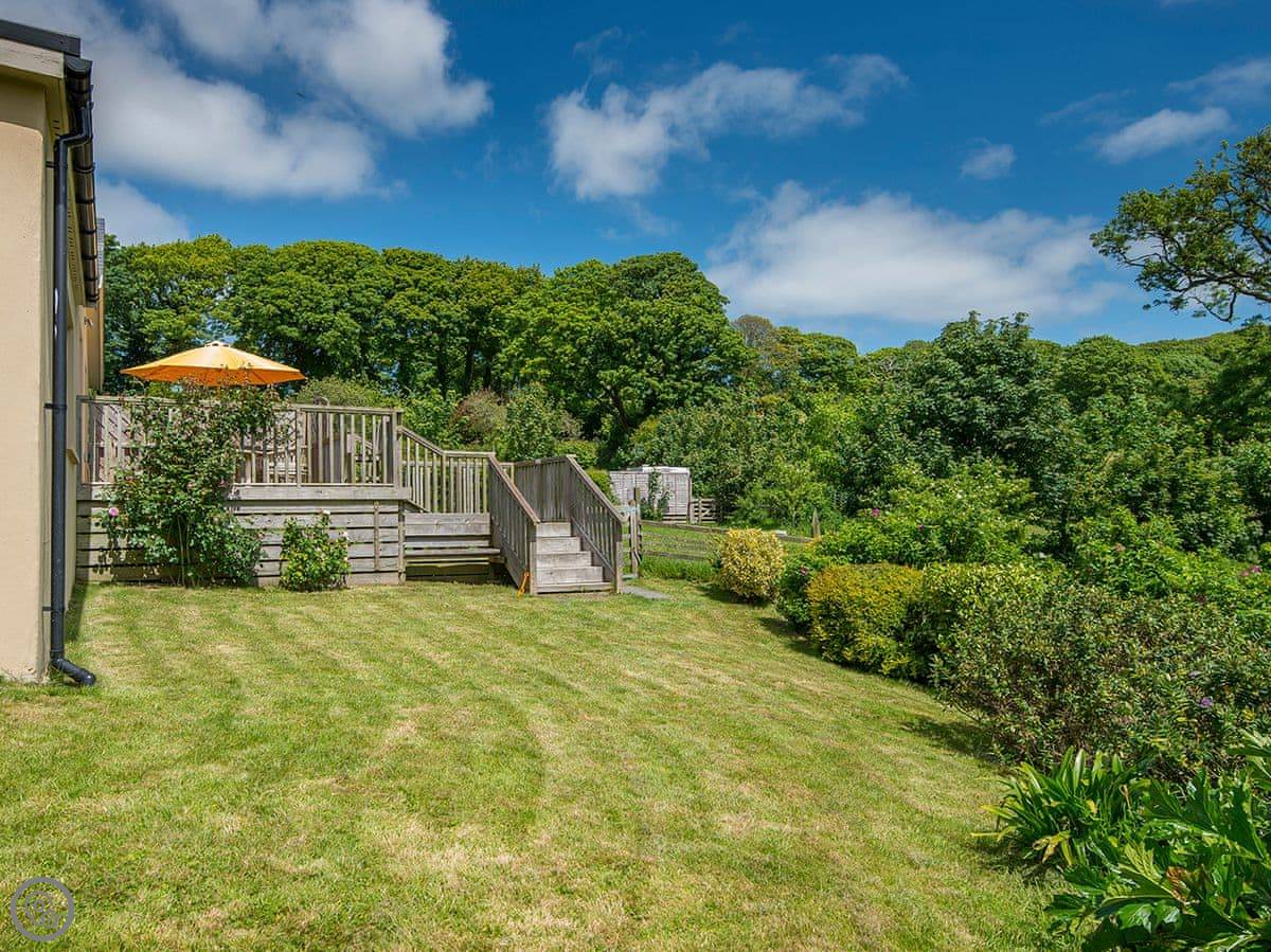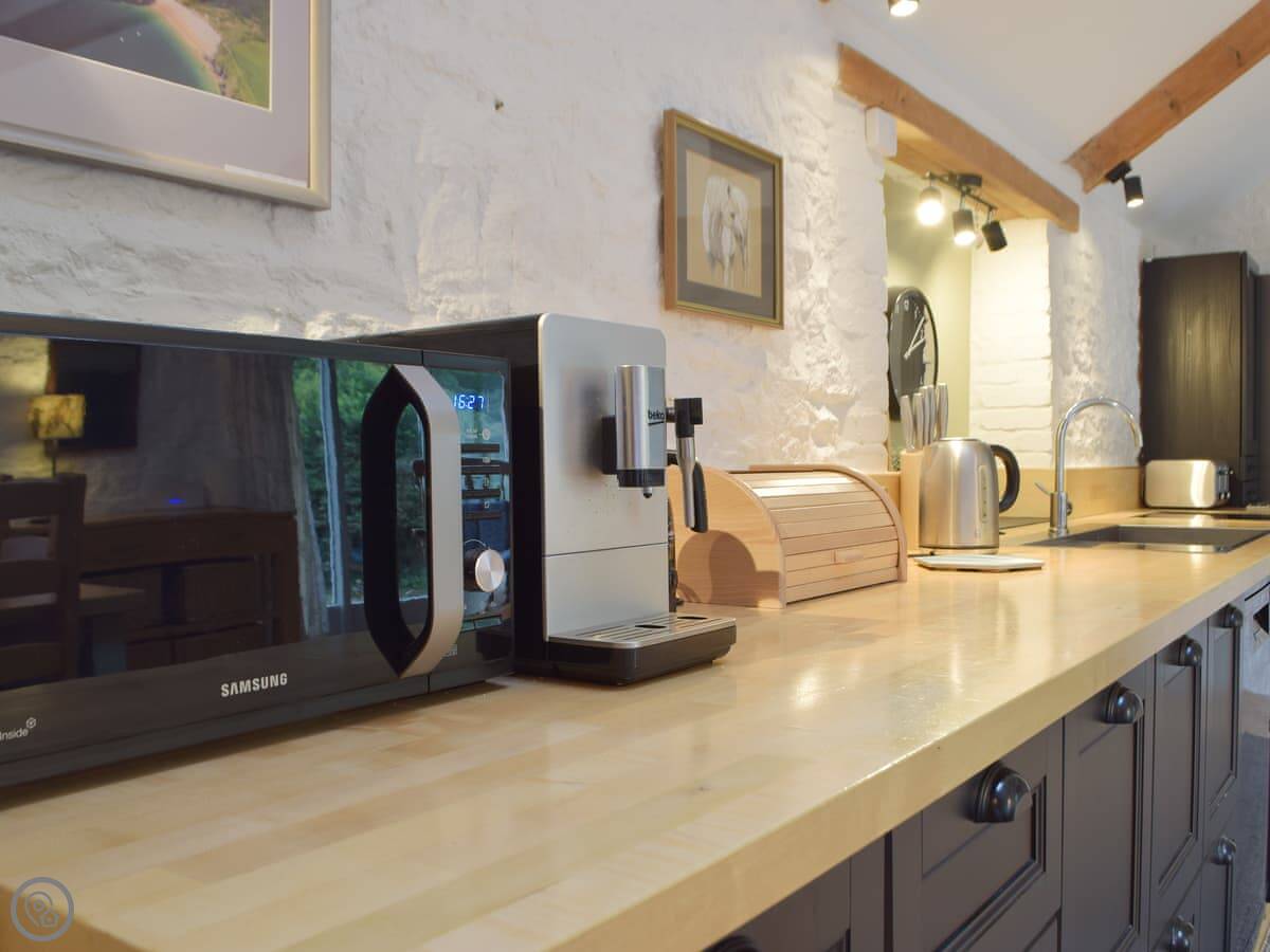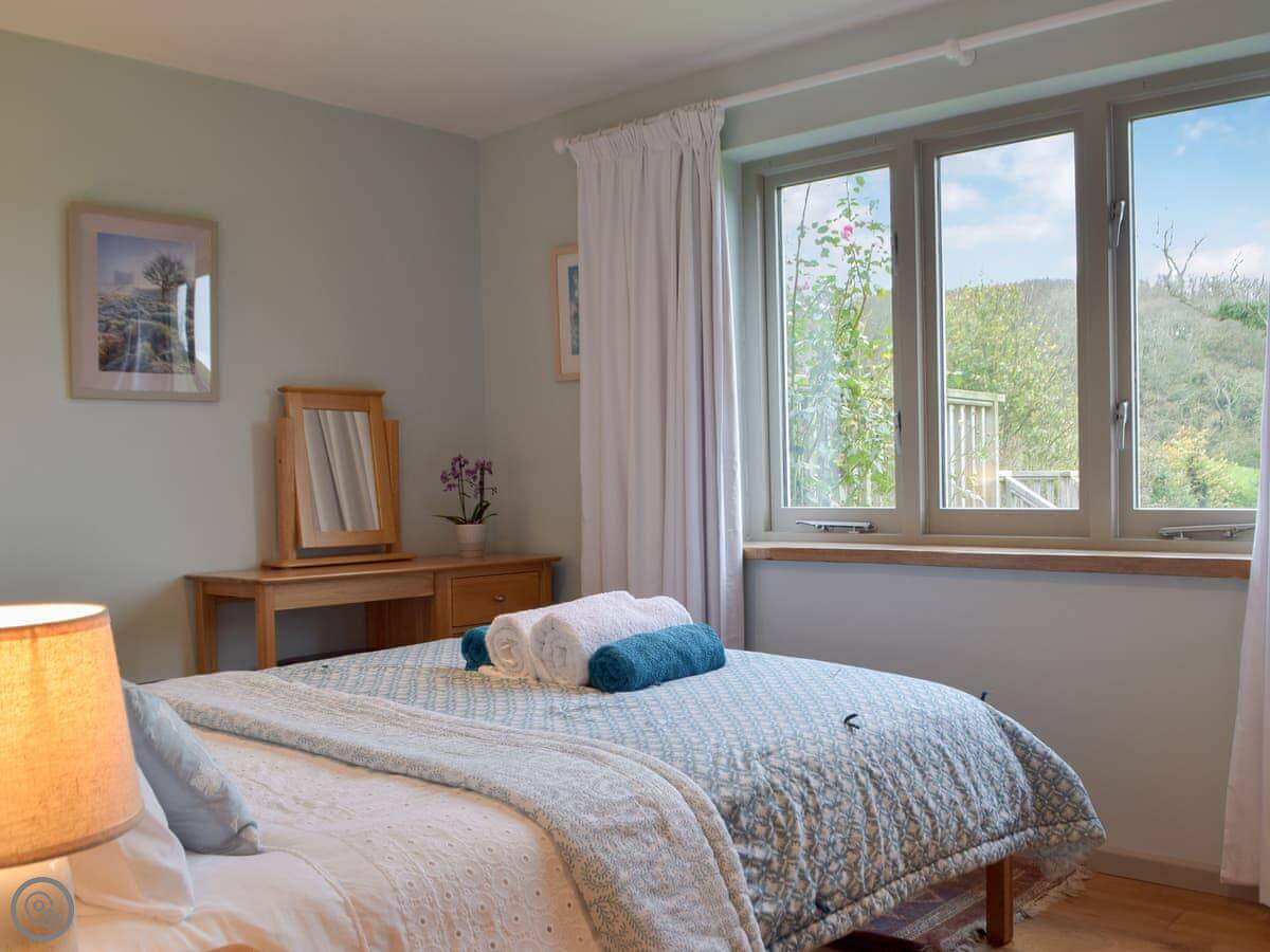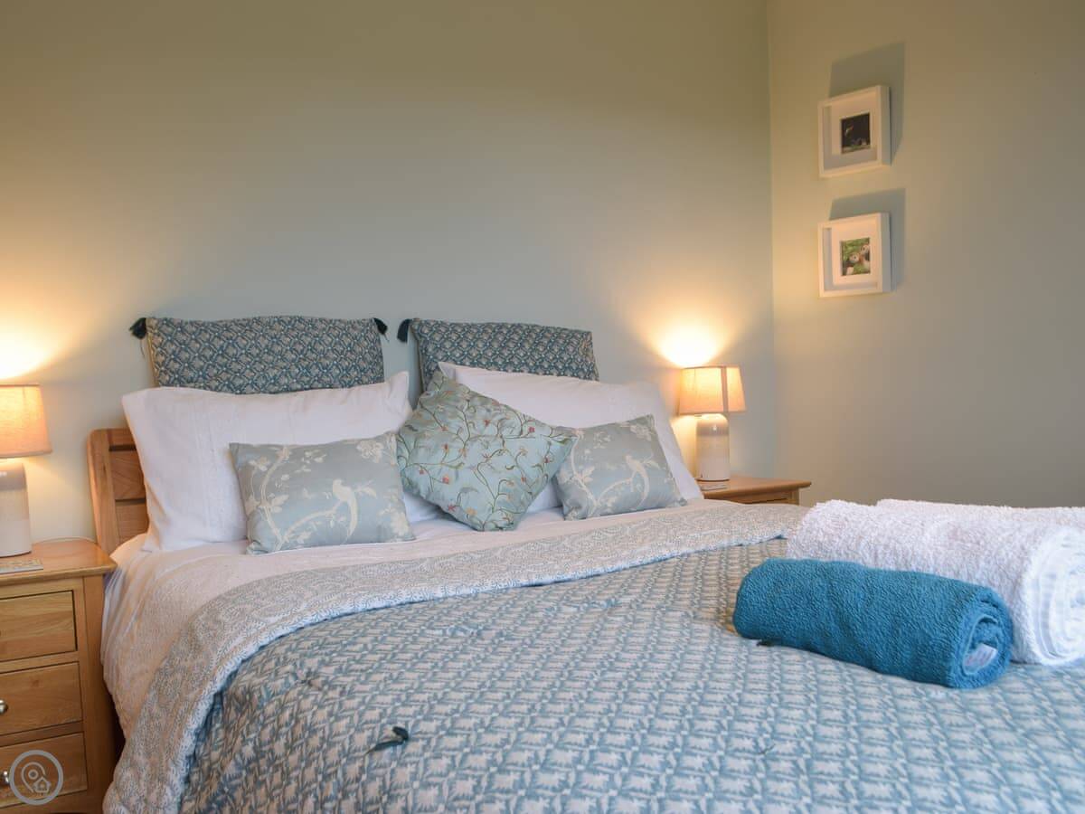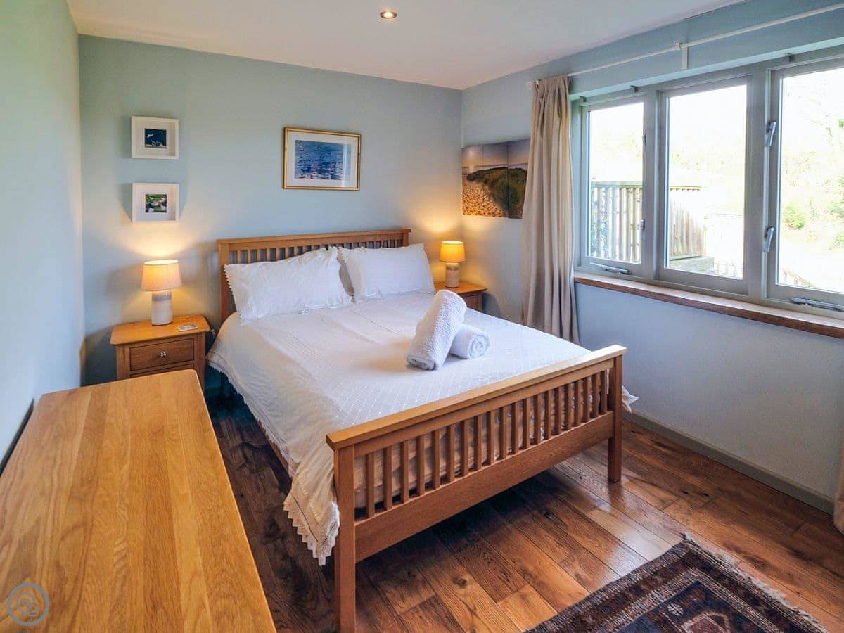 Sit back and relax by the warmth of the wood burner with a free and plentiful wood supply. This bright and airy space makes the perfect place to spend some quality time with your loved ones or catch up with your favourite show on the 49” Smart TV with Netflix. Prepare a tasty treat in the fully equipped farmhouse style kitchen, the dining area ideal for relaxed evenings of eating and chatting. Alfresco dining can be enjoyed on the large, decked veranda with superb valley views. Boasting three bedrooms, a magnificent kingsize bedroom with en-suite, a further bedroom with kingsize bed and wonderful valley views and the third bedroom having twin single beds. there’s plenty of space to have a good night’s sleep. Luxuriantly appointed with 3 separate bathrooms which consist of a well-equipped shower room, a bathroom, with shower over bath, and an en-suite shower room. All bathrooms have liquid dispensers filled with “faith in nature” cruelty free shampoo and body wash. Steps from the terrace lead down to a large, enclosed garden where you can feel reassured your dogs will be secure.