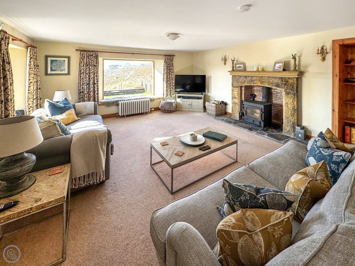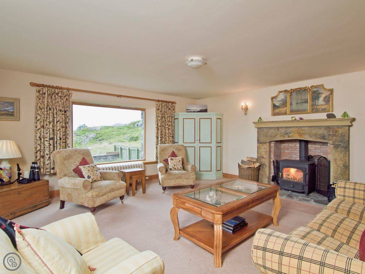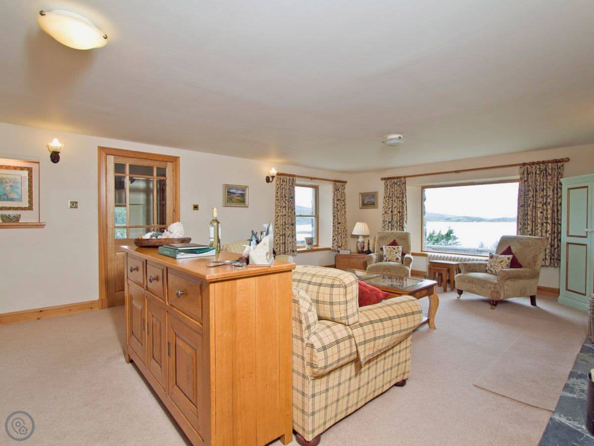 The main thing is the living room window. It's a huge picture window facing the sea. You'll spend most of your time looking out of it. We've left binoculars there because you often see sea eagles over the island, plus seals and otters. There's a wood burner for colder evenings.