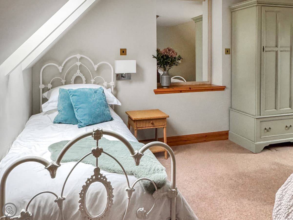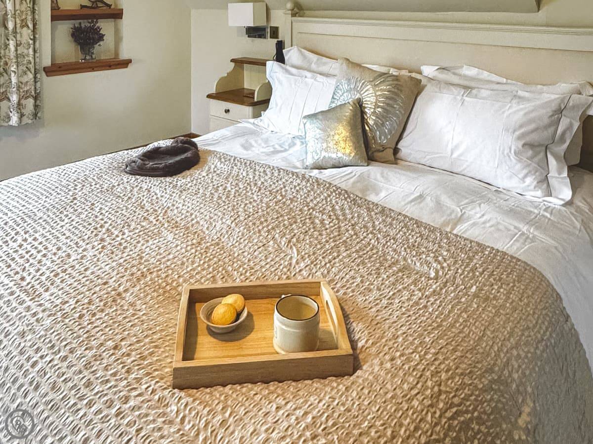 It sleeps five. Two bedrooms, but three bathrooms, which is unusual. There's a main bedroom with a super king bed and a second bedroom with a king and a single. Both are upstairs. The rating is 5 Star, which means it's very well finished.