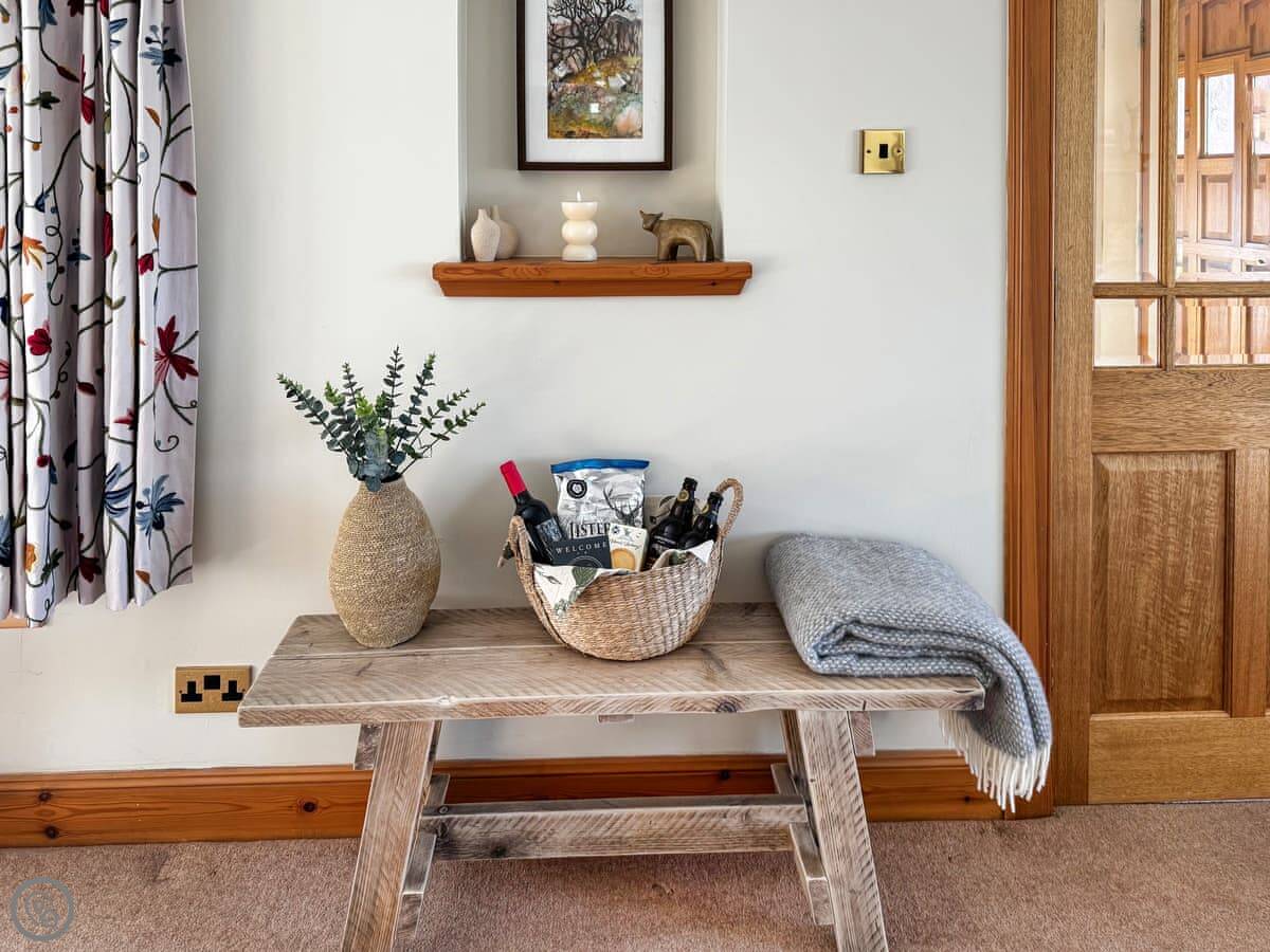 The village is a short walk. There's a hotel, a pub, a restaurant, and a village store. There's also a good place for coffee and cakes called Nannies. You can get fresh smoked salmon and pâté locally. If you ask in advance, sometimes a local fisherman can get you some prawns.