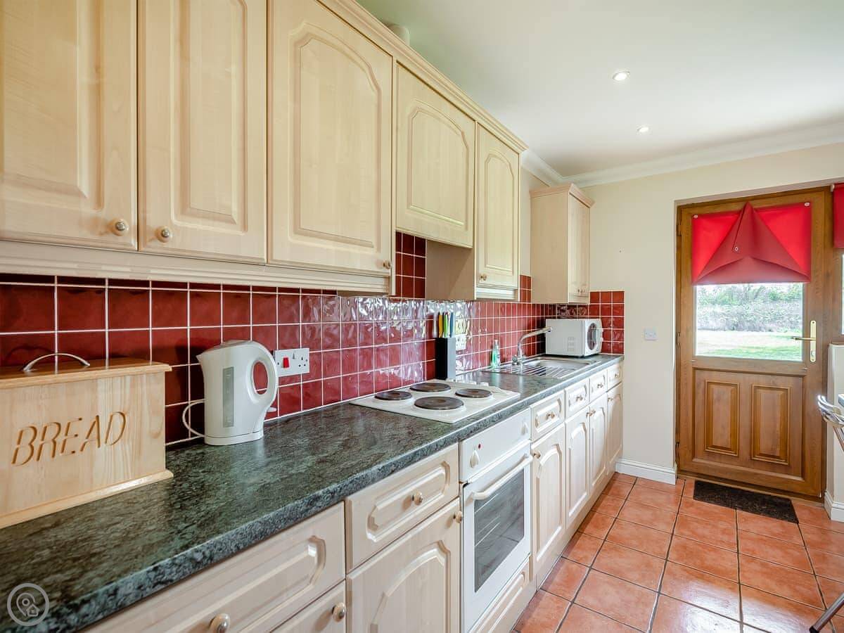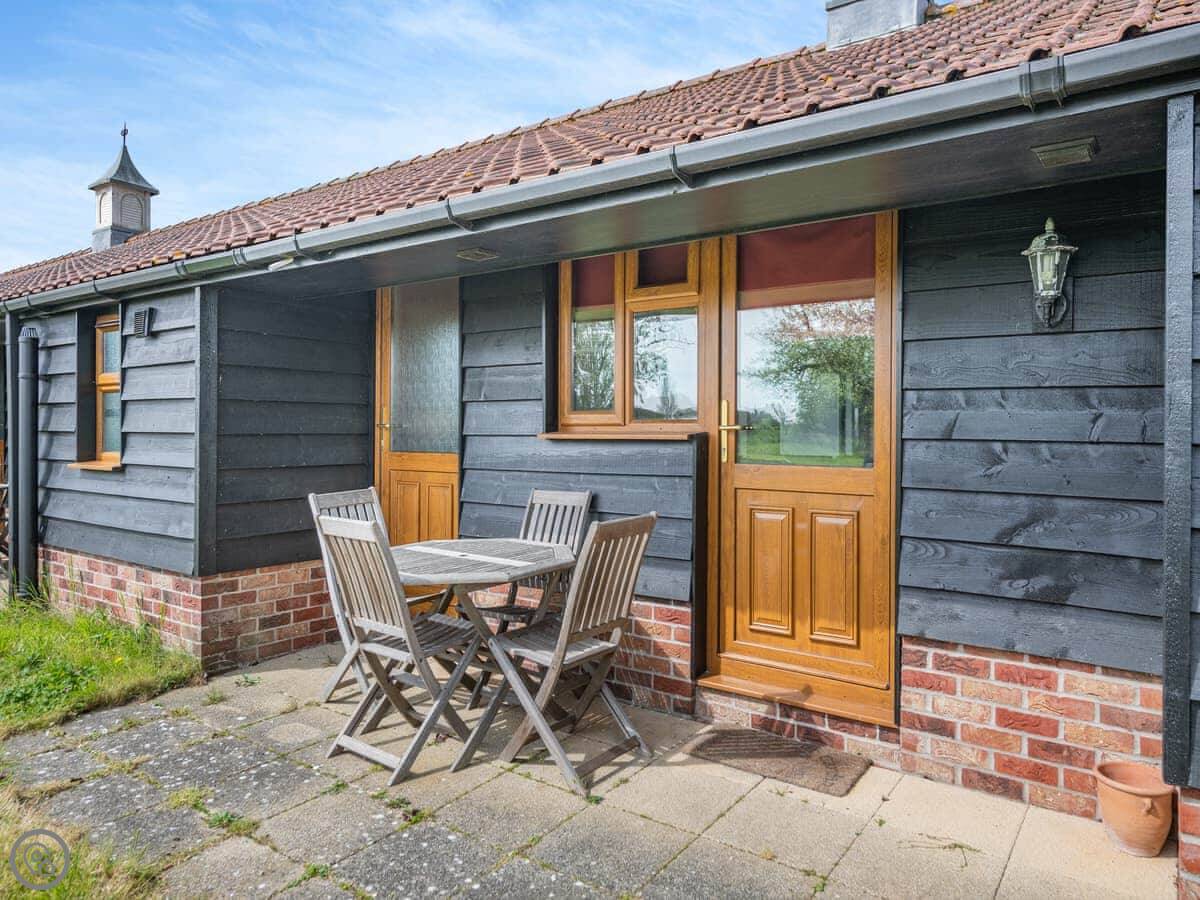 The cottage is part of an old farm conversion, grouped around a courtyard with a few others. You get your own patio and garden area. It's quiet and looks out over fields. There are about three acres of grounds here.