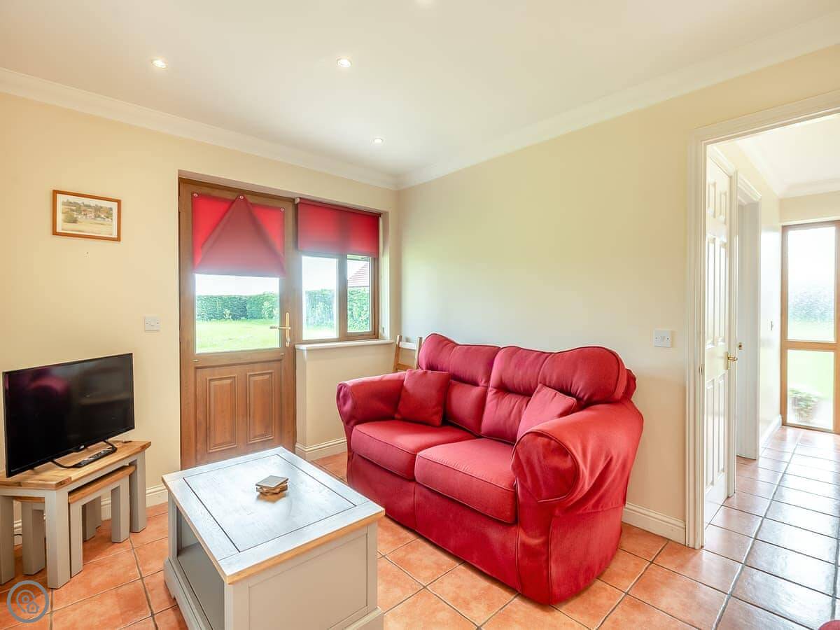 The cottage looks out over the fields here. There's about three acres of grounds, so there's space. You get your own patio area. The area's good for birdwatching and walking. The creek isn't far for a stroll.