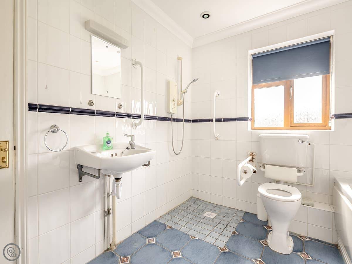 It sleeps four. It's one bedroom with a big bed, and a sofa bed in the living area. There's one bathroom, which is a wet room. It has grab rails and lower worktops, so it's good if you don't get around so easily. It's got a 4 Star rating.