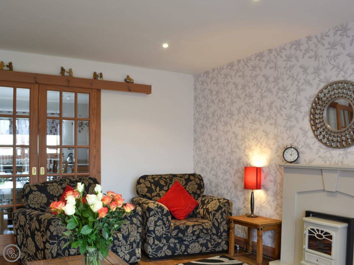 In the house: there's a wood burning stove, a dishwasher, a washing machine, and WiFi. Bedding and towels are included. There's on-site parking. It's wheelchair friendly at the entrance. You can bring up to two dogs. There's a cot and highchair if needed.