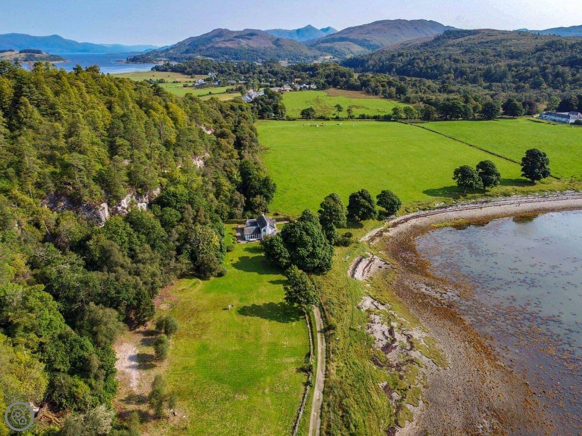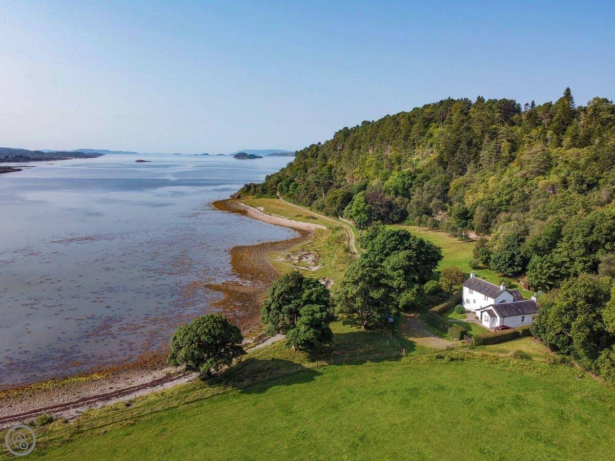 Cliff Cottage is near Port Appin, up a private track about a mile long. It's detached, so it's just you and the views. The track is fine for normal cars, just a bit bumpy.