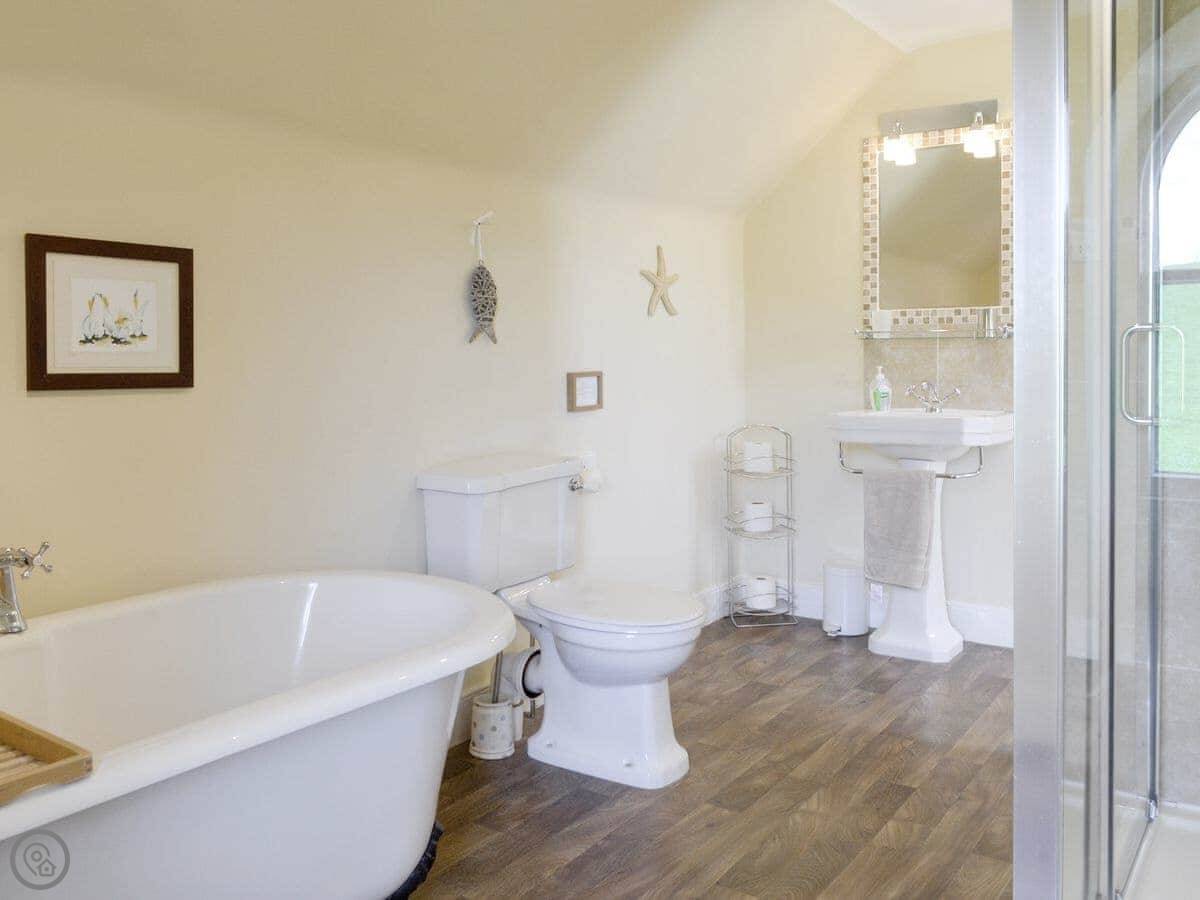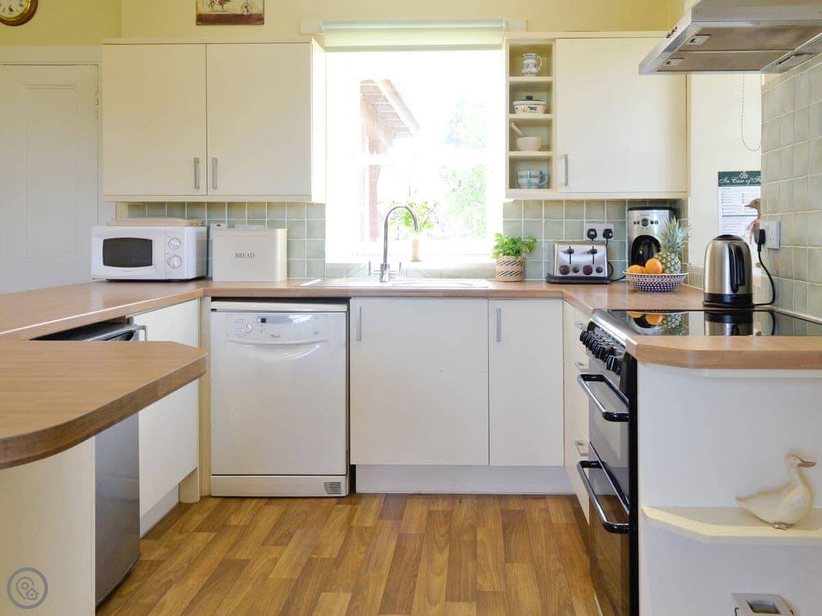 Inside, it's comfortable. Got a woodburning stove. There's a dishwasher, a washing machine, WiFi. It's got a 4 Star rating.