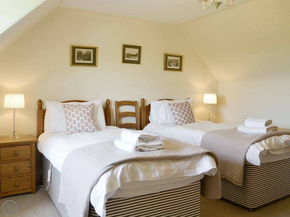 You're up on a 2000-acre estate in the Vale of Strathmore. The views are over fields. It's quiet. The garden's enclosed, which is good if you've got dogs. We take up to three.