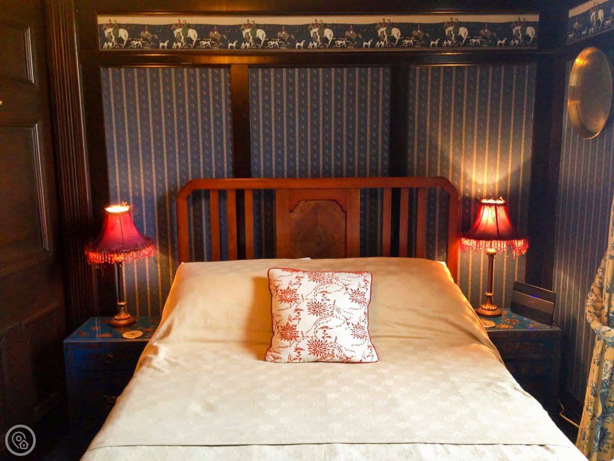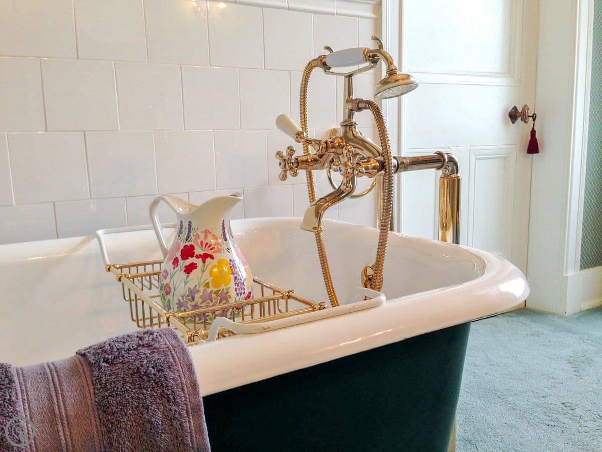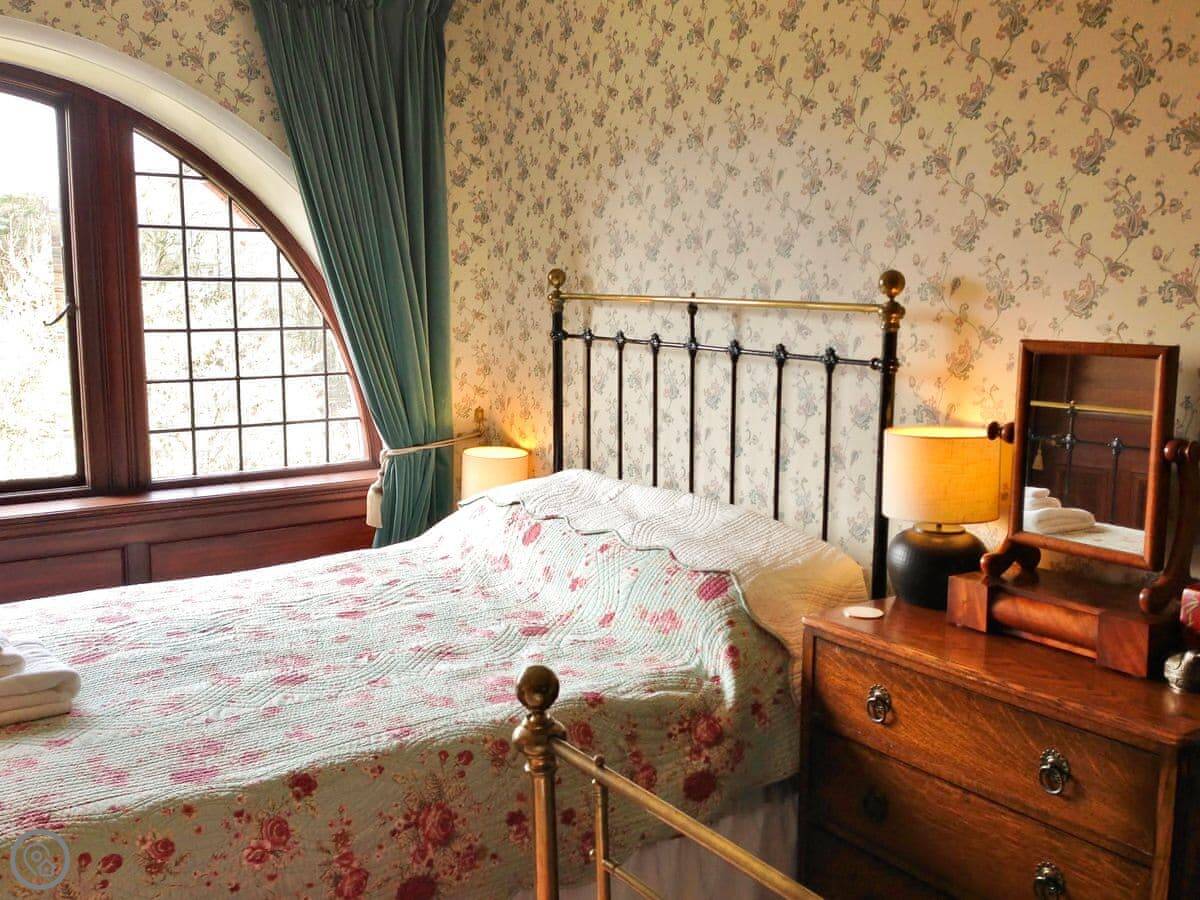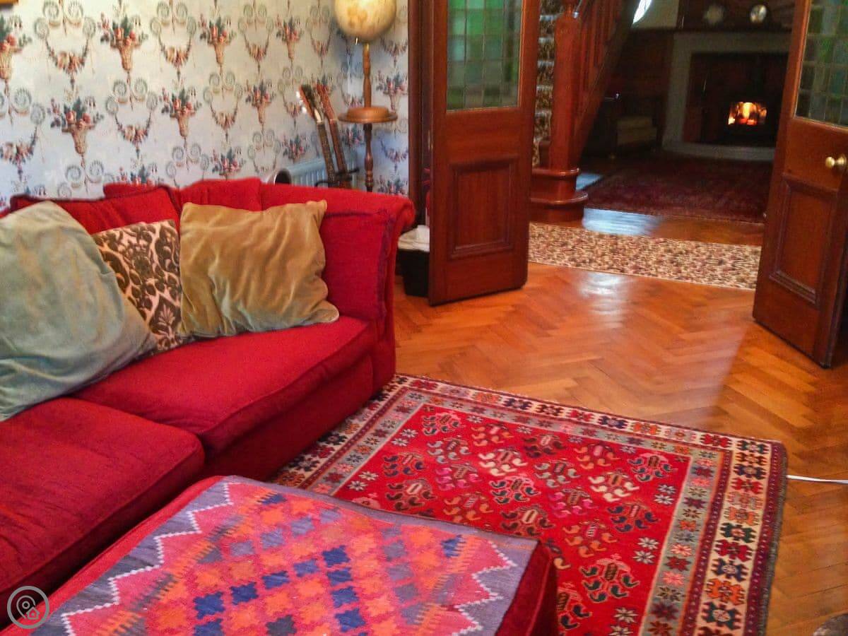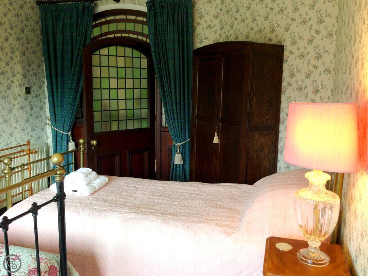 Designed by William Bell circa 1899, Dunvarlich House is a superb example of Arts and Crafts movement architecture and has a Historic Scotland listing category B. The house occupies a stunning position with breathtaking views overlooking the River Tay, with its 18th-century stone bridge, glens and mountains beyond. To the front of the house there are steps that lead down to a beautiful river walk. The house is entered by an Oriental-style vestibule with pale green stained glass, opening into a long, imposing hall and has been lovingly restored and elegantly furnished with antiques for discerning guests and families. It boasts original oak panelling in the drawing room, wood-burning stove, glass sun porch and a quaint, original cloakroom. A double staircase sweeps up either side of a fireplace with log burning stove, leading to four generous bedrooms and two large Victorian bathrooms. The caretakers are resident in a completely separate private rear wing.