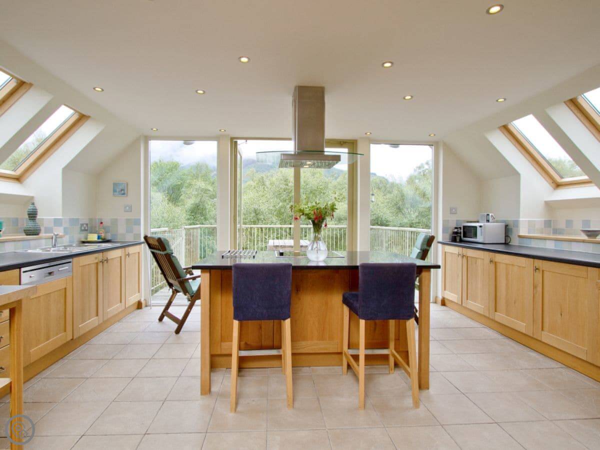 Carness West is in North Ballachulish in the Highlands. It's a detached house. The view is the main thing. The house was built for it, with big windows upstairs and doors out to two balconies so you can see the mountains all around.