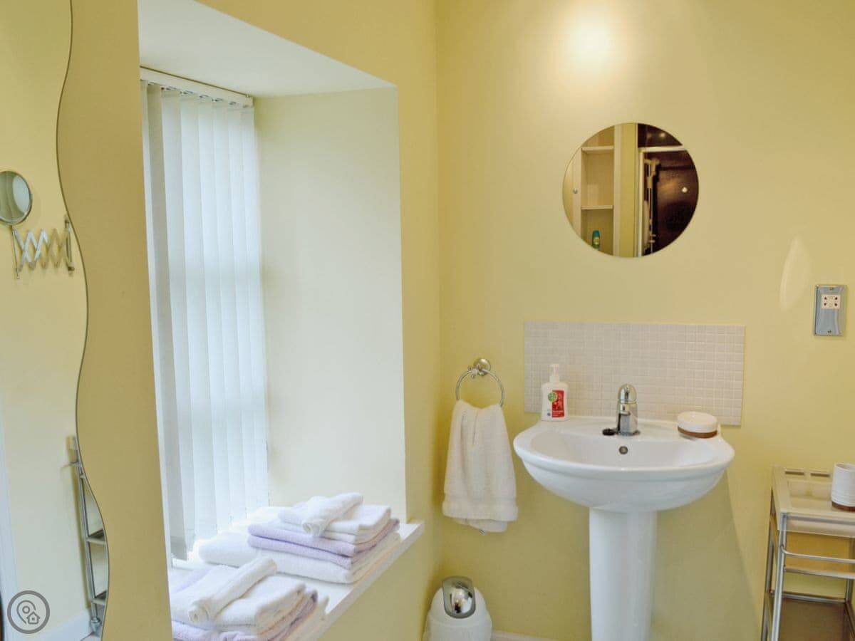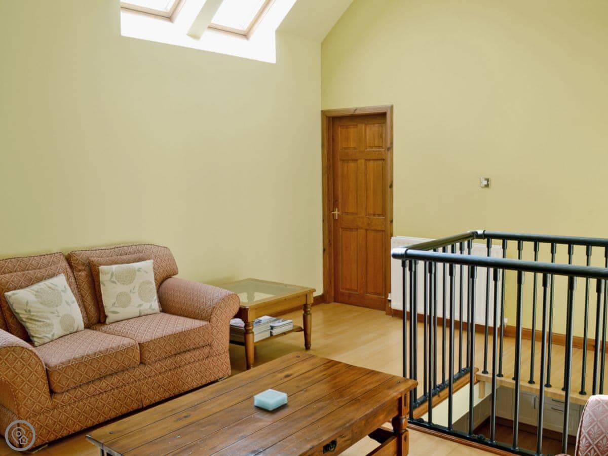 It sleeps four in two bedrooms, and there are two bathrooms which is handy. It's got a 4 Star rating. They did a nice job on the conversion, it was even on a TV show once. The main thing to know is about the stairs. They're the original stone spiral stairs from when it was a Sunday school. They're open and quite steep. You just need to take care on them.