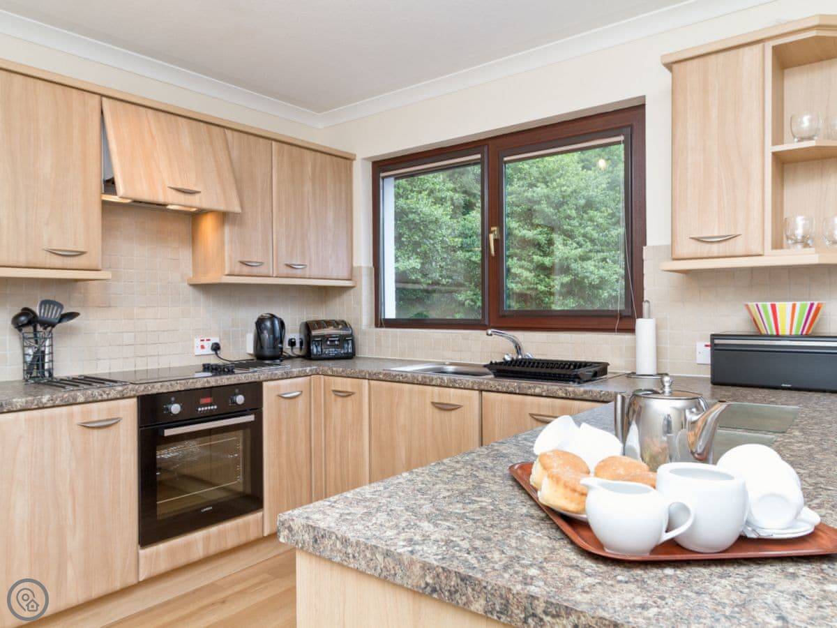 Inside, there's a dishwasher, washing machine, TV, and WiFi. Bedding and towels are included. There's a cot and highchair if you need them. Parking for two cars right outside.