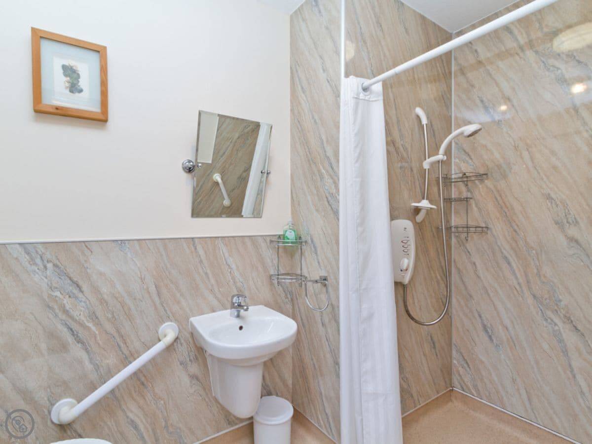 The wet room and the layout mean it works if someone has limited mobility. There are grab rails by the toilet and in the shower.