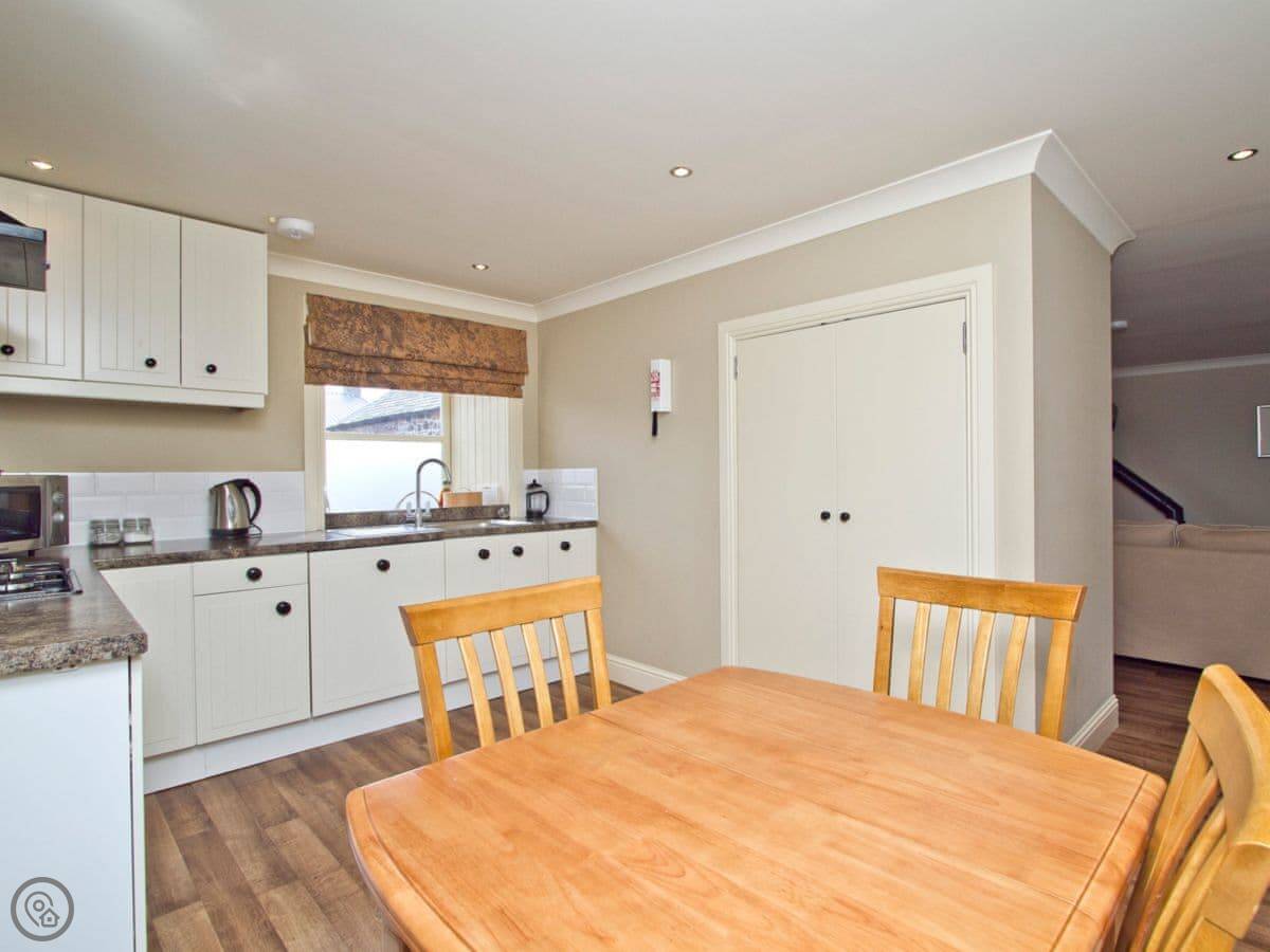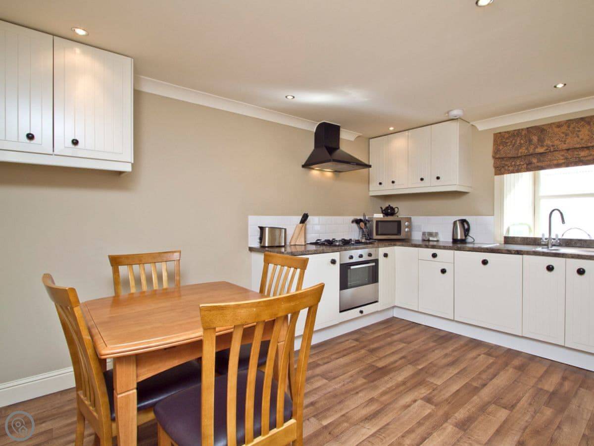 It sleeps four. Two bedrooms and one bathroom. It's got a 4 Star rating. It's comfortable, with a wood burning stove for the evenings. It's all on one level, which is handy. The kitchen has a dishwasher and there's a washing machine.