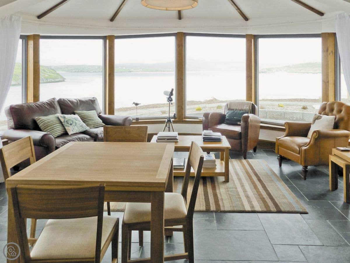 It's very quiet. The nearest neighbour isn't close. There's a small community shop about three miles away in Timsgarry. The Abhainn Dearg whisky distillery is a short walk down the road, maybe ten minutes. For a cafe or a meal out, you're looking at a ten to fifteen minute drive.