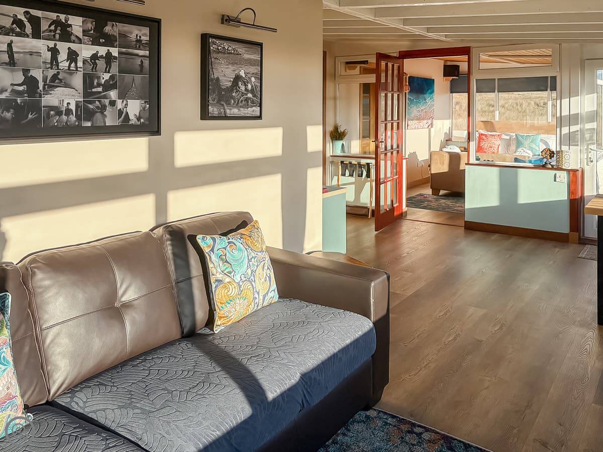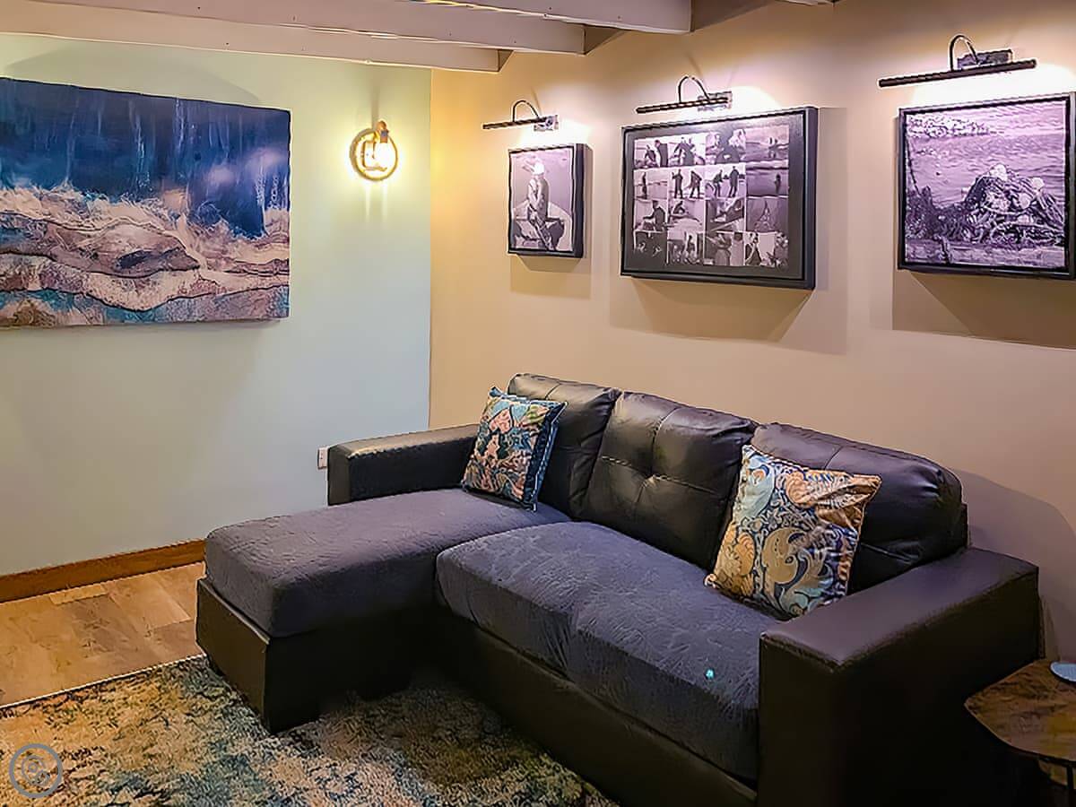 There's a local pub about a mile and a half down the road. The nearest shop is eight miles, so you'll want to arrive with supplies. We have a wild salmon smokery on site. You can buy some if you like. The paintings inside are by my wife.