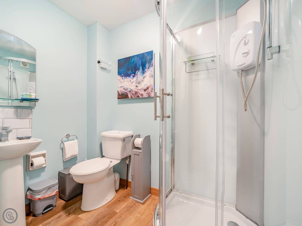 It's got one bedroom and one bathroom with a shower. Fairly small but it's all there. It's a 5 Star place, which really just means it's well-equipped and finished to a high standard. Nothing's missing.