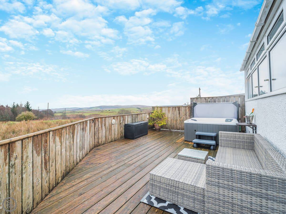 The main thing is the view. You look straight out at the Galloway Hills. There's a private deck with an American hot tub. You'll see plenty of birds. Red Kites, Sparrowhawks. Red squirrels and deer are common. Pine martens too, if you're lucky. It's very quiet.