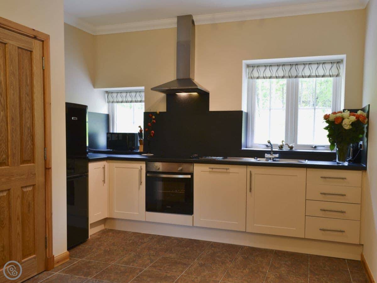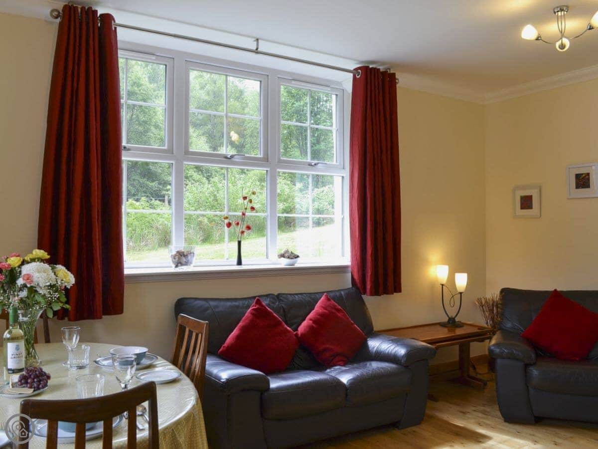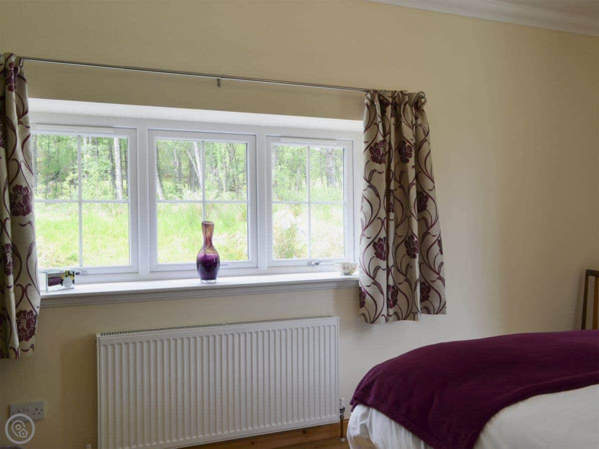You're in the middle of the glen. It's very quiet. You’ll see red squirrels and deer in the fields. There's a garden with a bench to sit out.