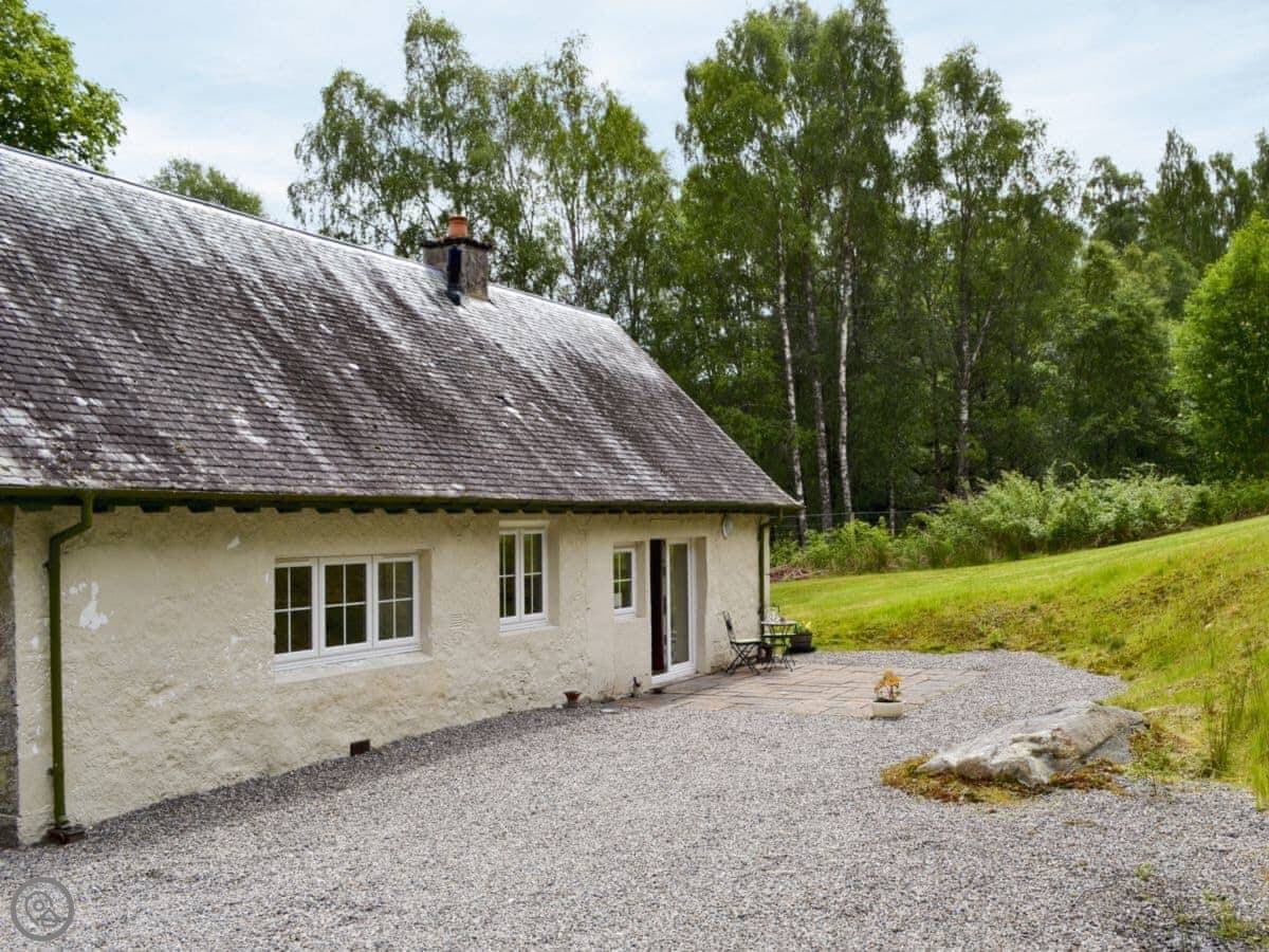 Laundry Cottage is in Glen Moriston. It's a detached cottage on a working hill farm. You're right next to the River Doe.
