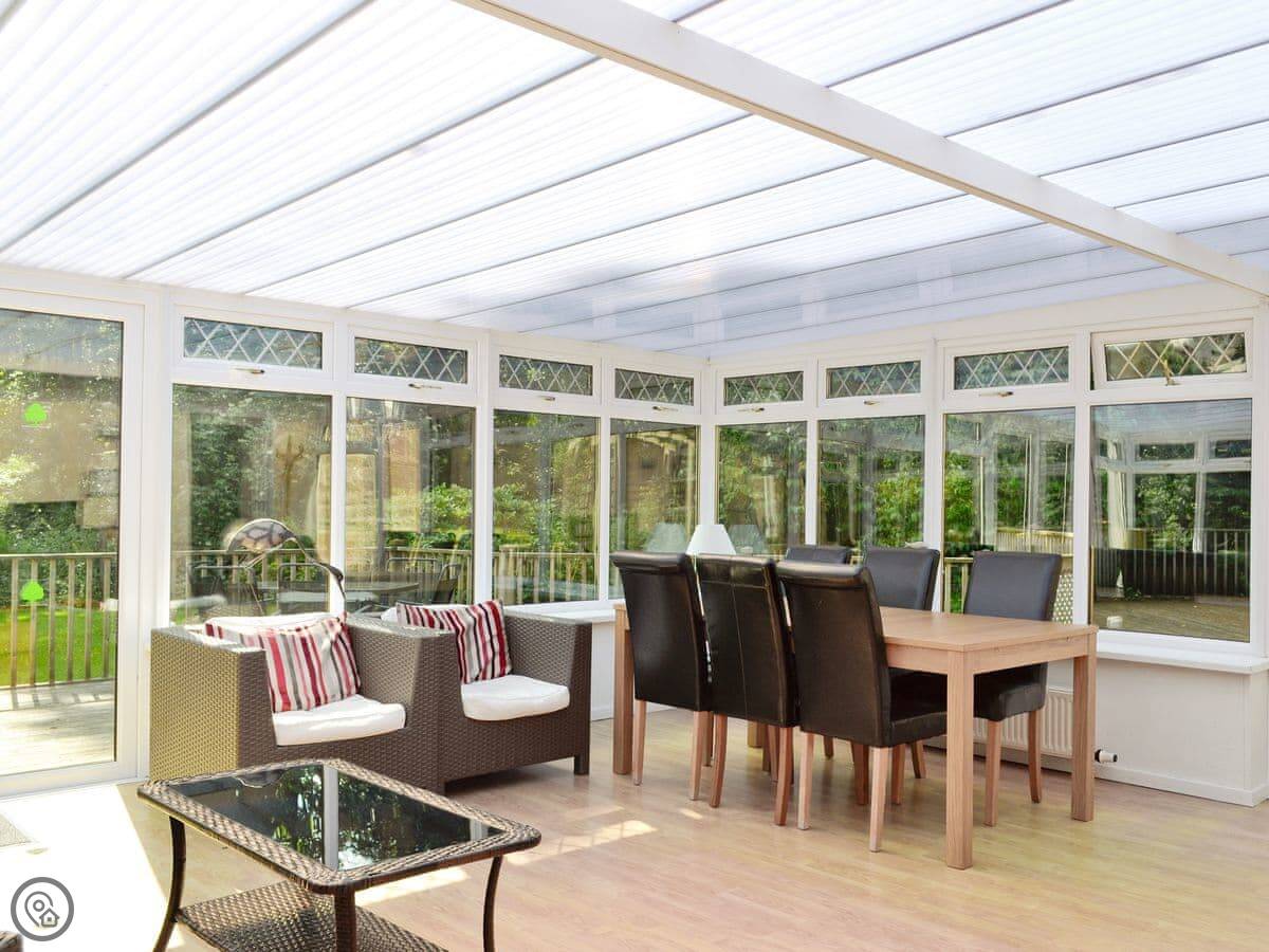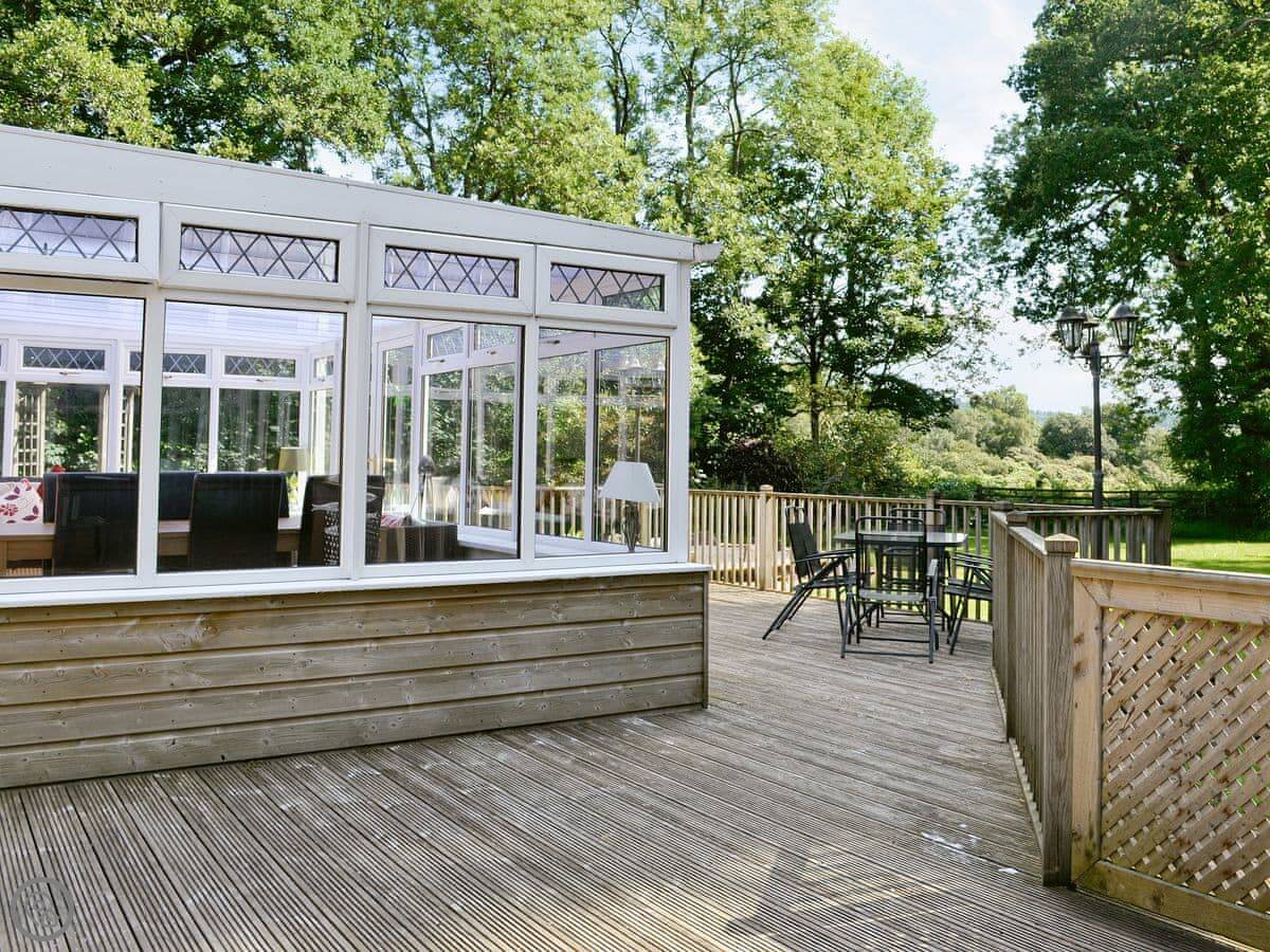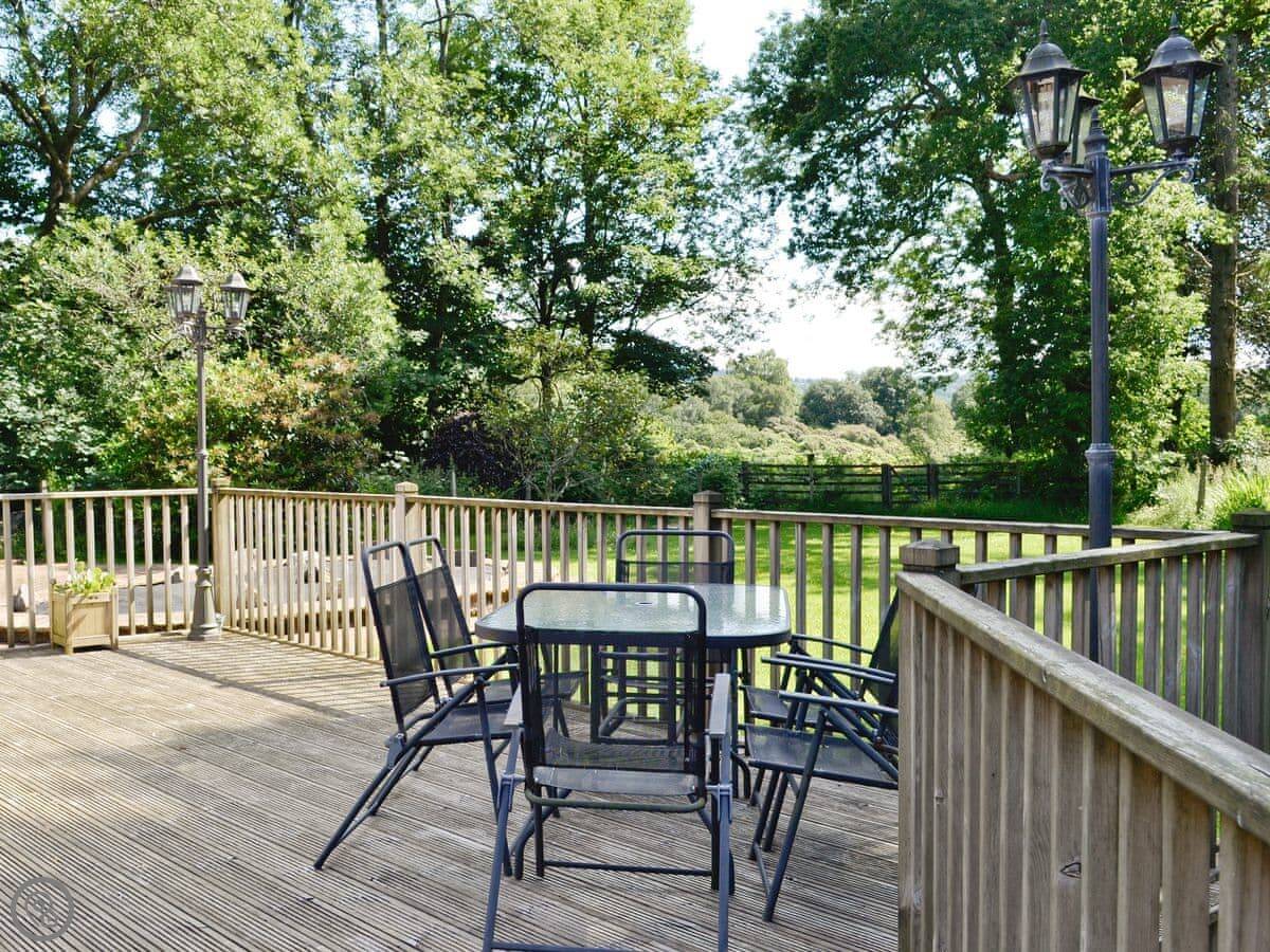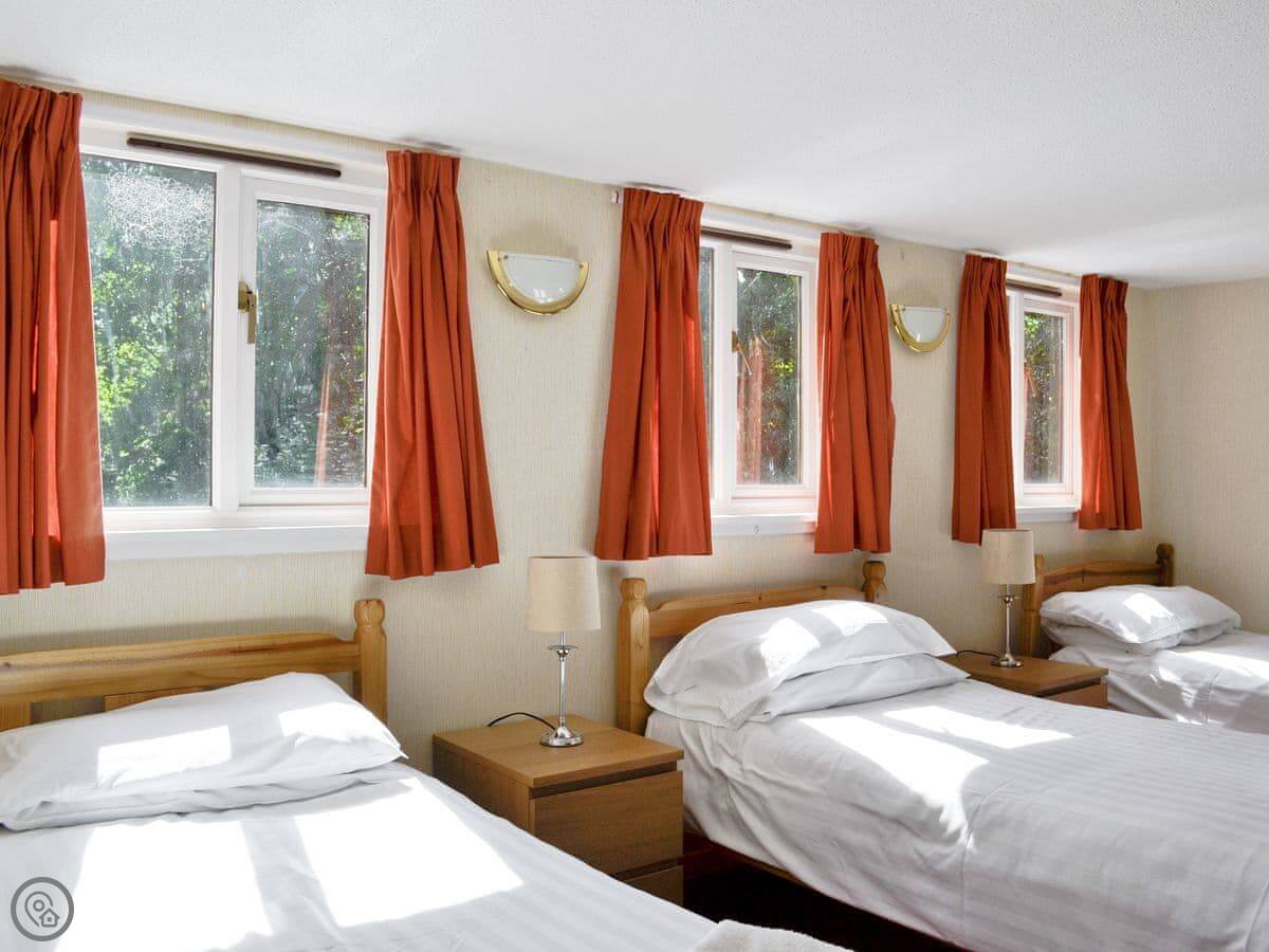 It sleeps seven people in three bedrooms. There are two bathrooms. It’s got a 4 Star rating, which means it’s comfortable and well-equipped. It’s not huge, but it works fine for a group. There’s a fenced decking area with a hot tub.
