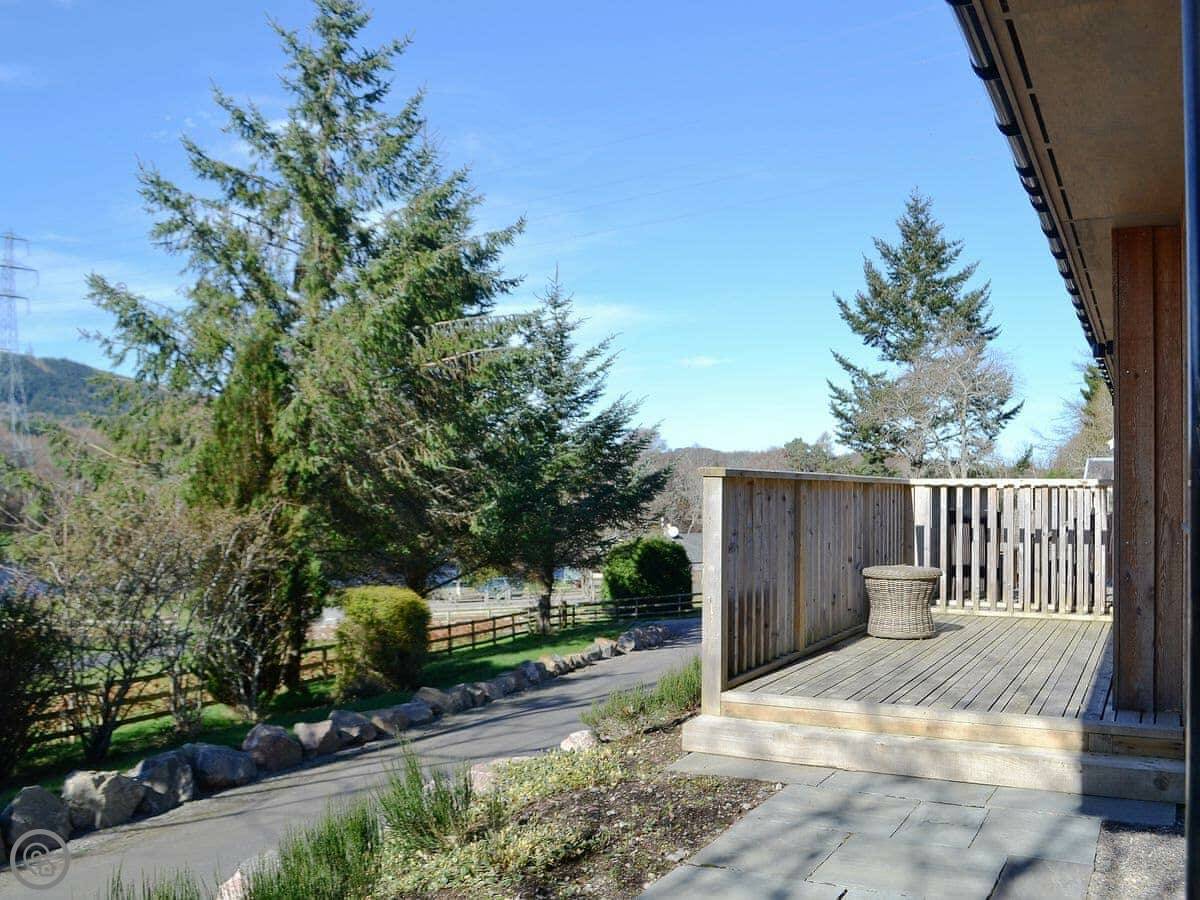 Red Squirrel Cottage is on the Ness Castle Estate, just outside Inverness. It's a single-storey lodge, so everything is on one level. You're next to Weir Cottage, but you have your own place and a private deck.