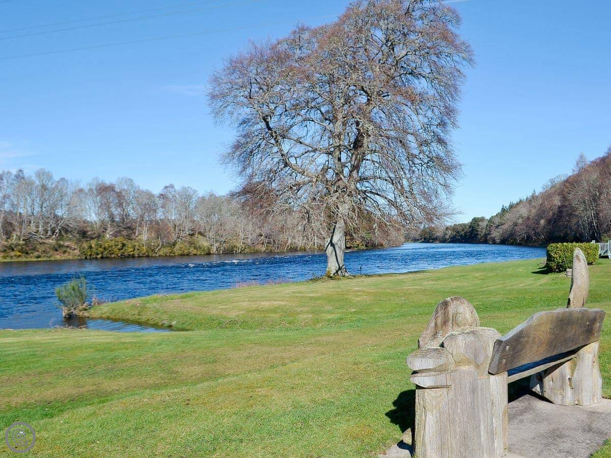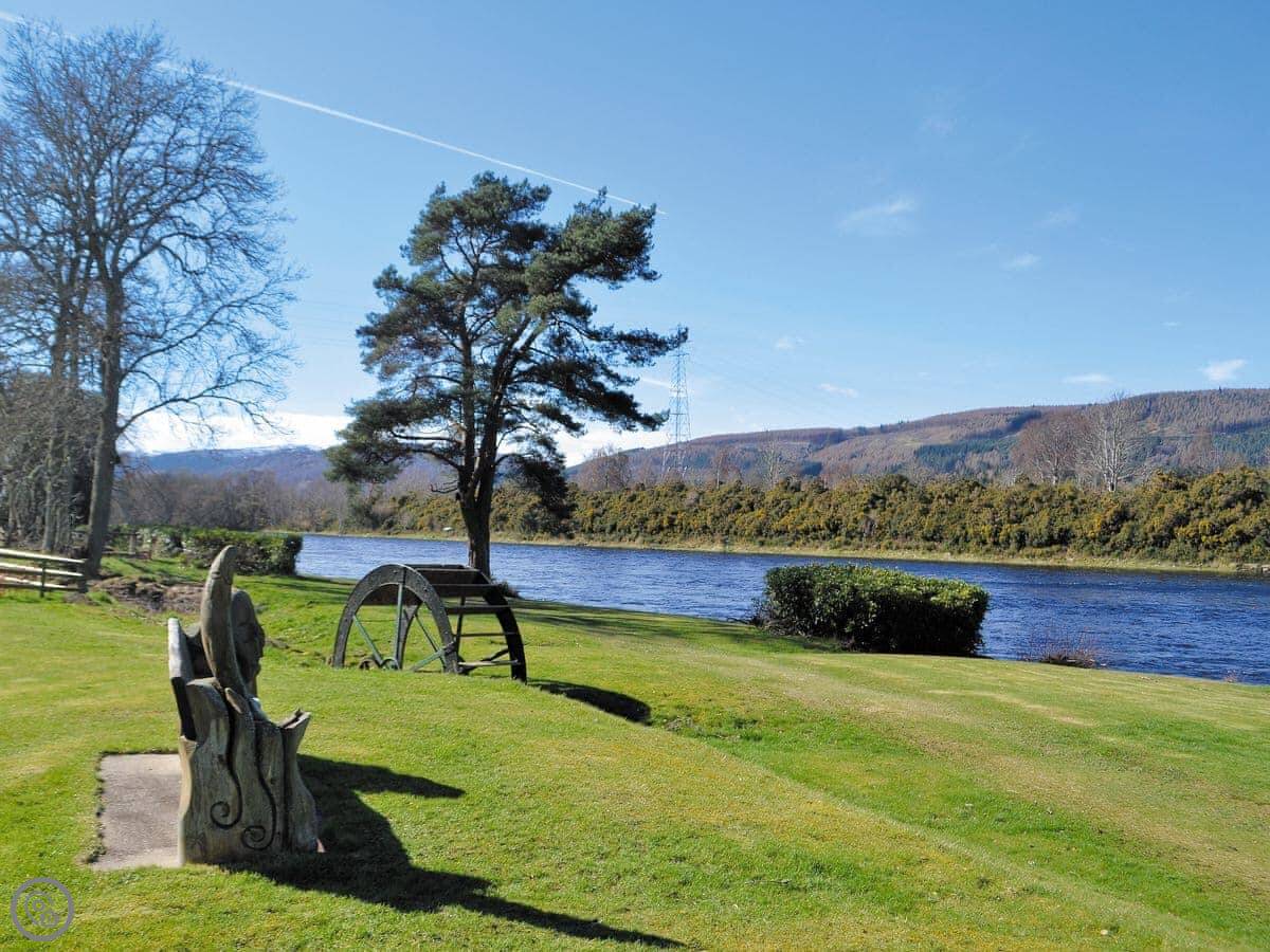 The estate is quiet. You'll see red squirrels and birds. The river is right there. You can arrange salmon fishing locally if that's your thing. It feels quite secluded, but Inverness is only about a ten-minute drive for shops and restaurants.