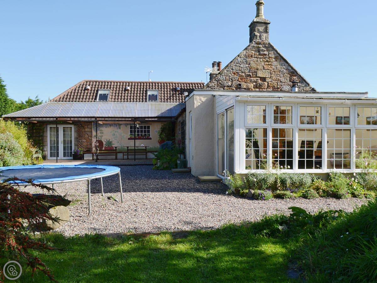 Situated in a peaceful and scenic, rural setting, with panoramic views of the River Forth and East Neuk of Fife coastline, Gordons Hall Cottage is the ideal location in which to relax and enjoy the area and all it has to offer with friends and family. Accessed by a rough track, this self catering cottage is one of a pair, and has been lovingly restored by the owners, offering a sunny secure private garden with raised vegetable beds and a greenhouse, from which you may enjoy the salad crops and tomatoes when in season. The conservatory and patio area are ideal for relaxing in with a glass of wine after a long day exploring the local area. Close to beautiful sandy beaches of St Monans, Pittenweem, Crail and Anstruther, there is no shortage of hill walks, bridle paths and cycle tracks. Kellie Castle, with its beautiful walled garden, is within a mile and the historic university town of St Andrews, with its world famous championship golf courses, is only 8 miles away, together with many other local golf courses in the area, making this an ideal location for a golfing holiday. Edinburgh airport is 45 miles. Beach 4 miles. Shop, pub and restaurant 4 miles.
