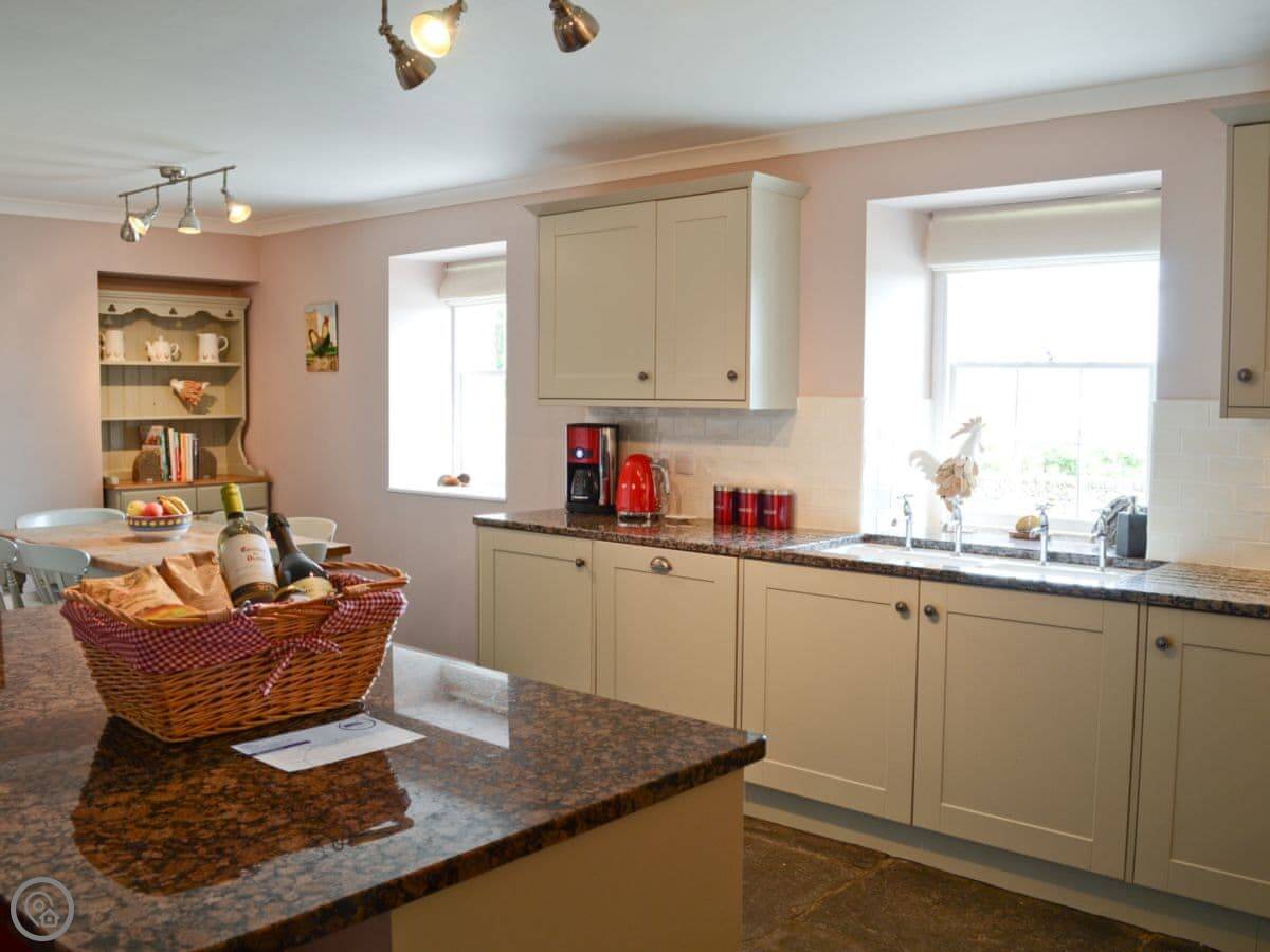 In terms of what's there: all bedding and towels are included, there's a washing machine and dishwasher, plenty of parking, and bike storage. We take up to two dogs. It's got a 5 Star rating, which means it's well-finished and equipped.