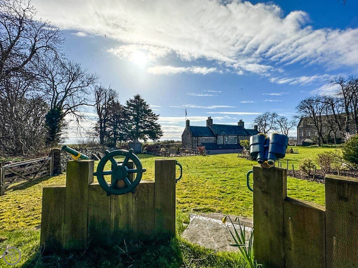 The garden is fully enclosed, which is good for dogs and kids. You can walk into Golspie village in a few minutes. There's a shop, a couple of pubs, places to eat, and a nice sandy beach. The Ben Bhraggie hill path starts right behind the house. If you're into mountain biking, the trail there is supposed to be very good.