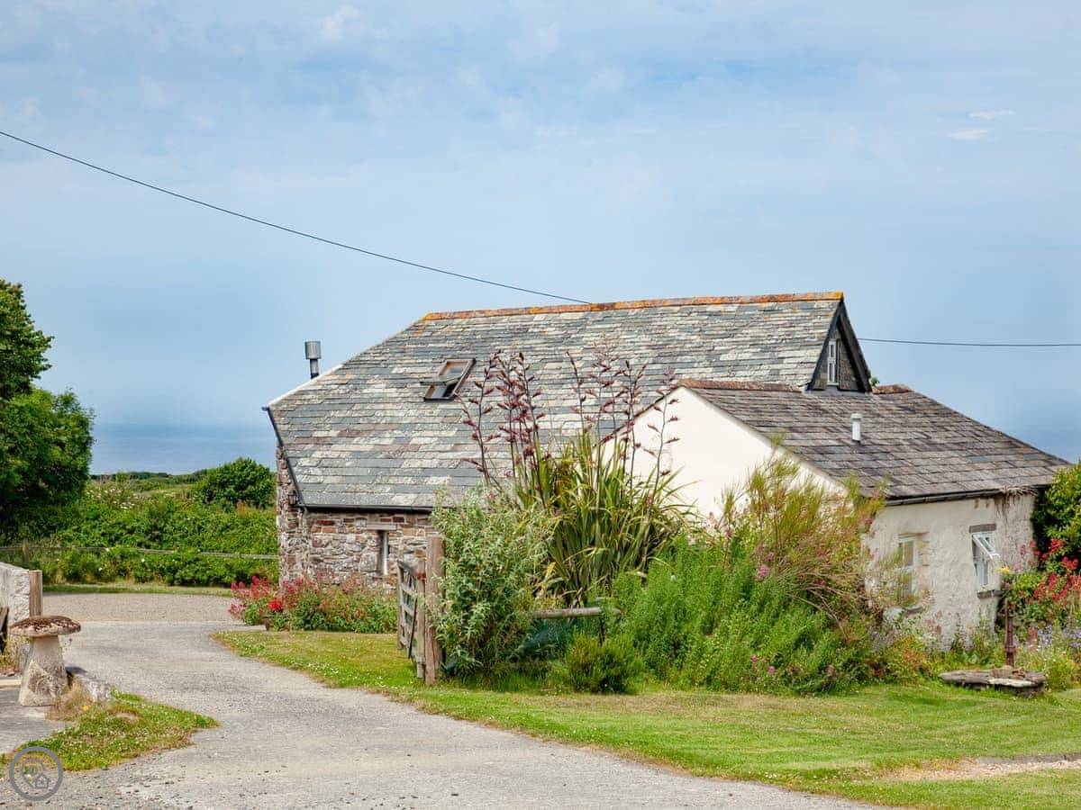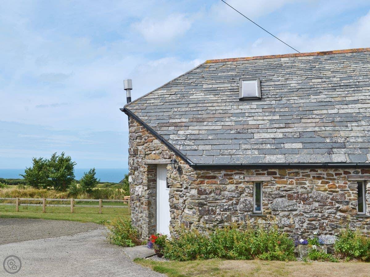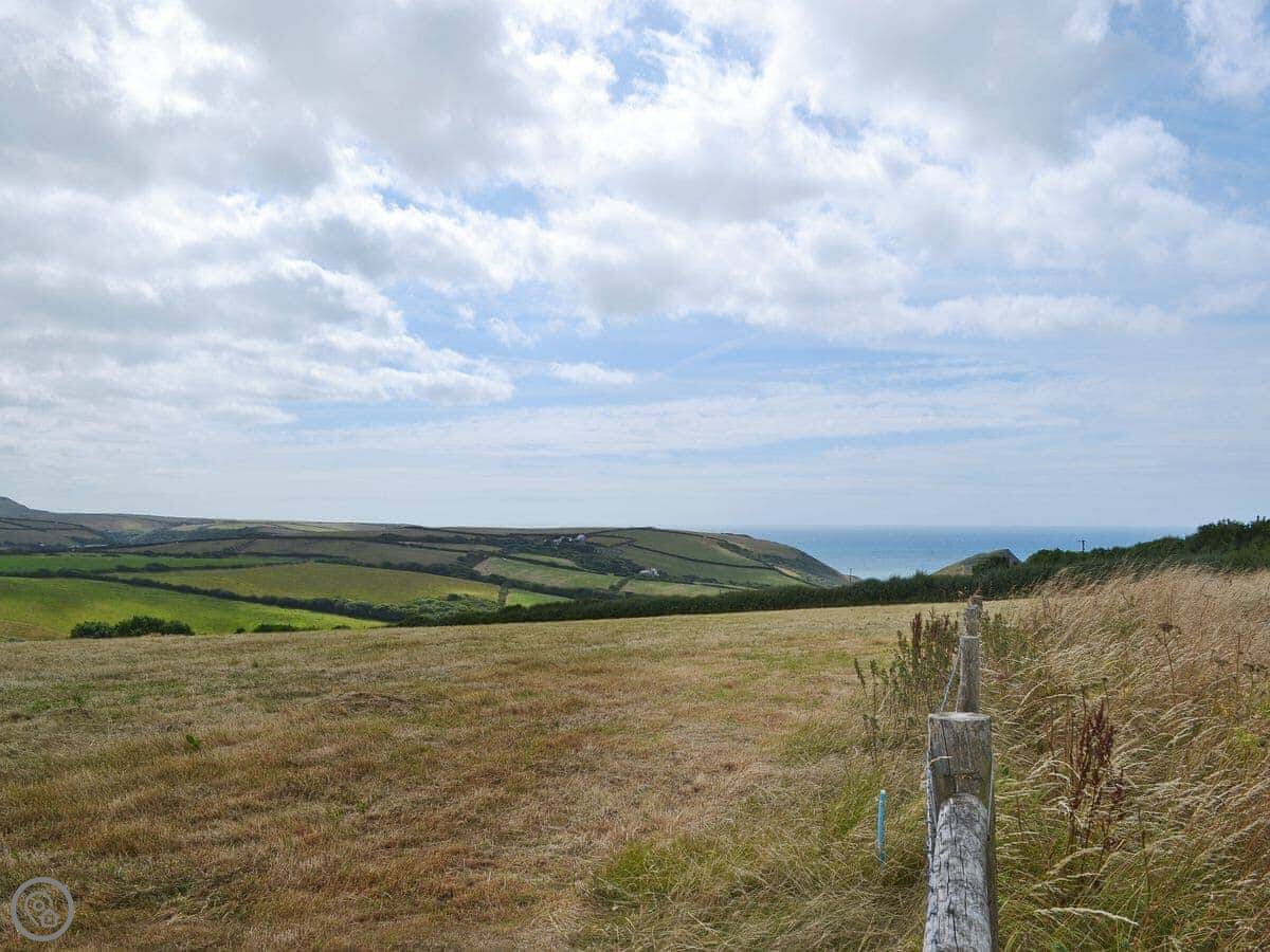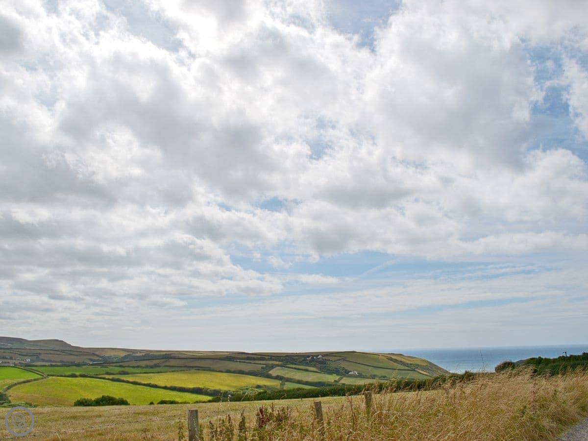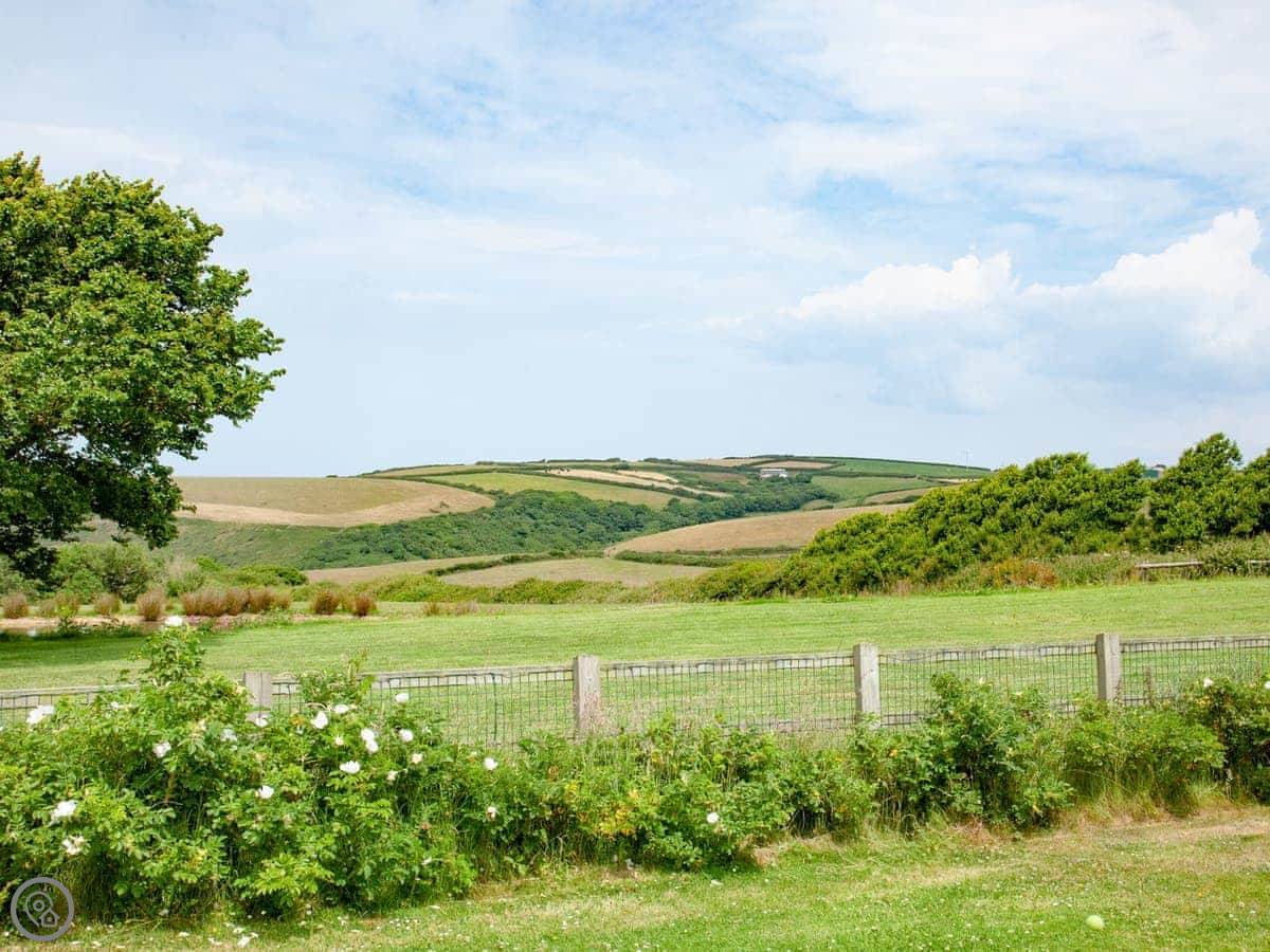 The Roundhouse is a detached cottage up near Crackington Haven in Cornwall. It's one of a few cottages converted from an old farm. The views from here are good, looking out over the fields to the sea.
