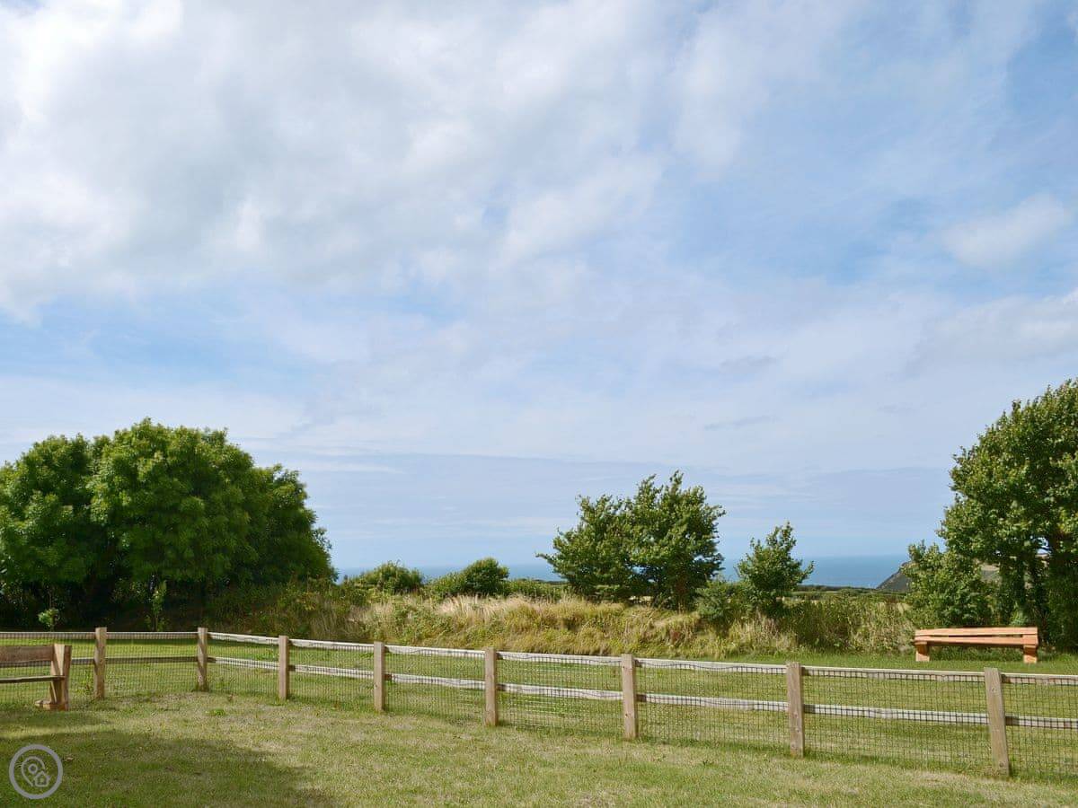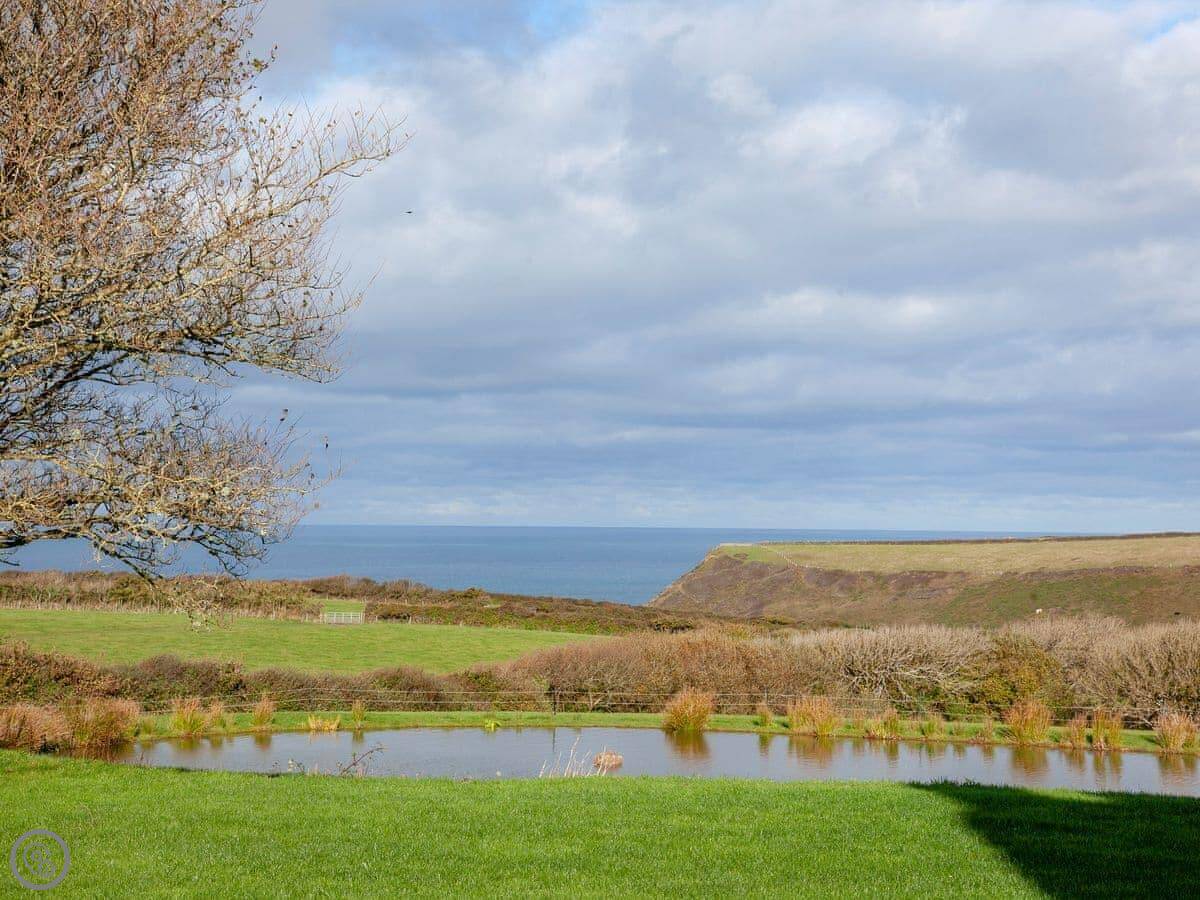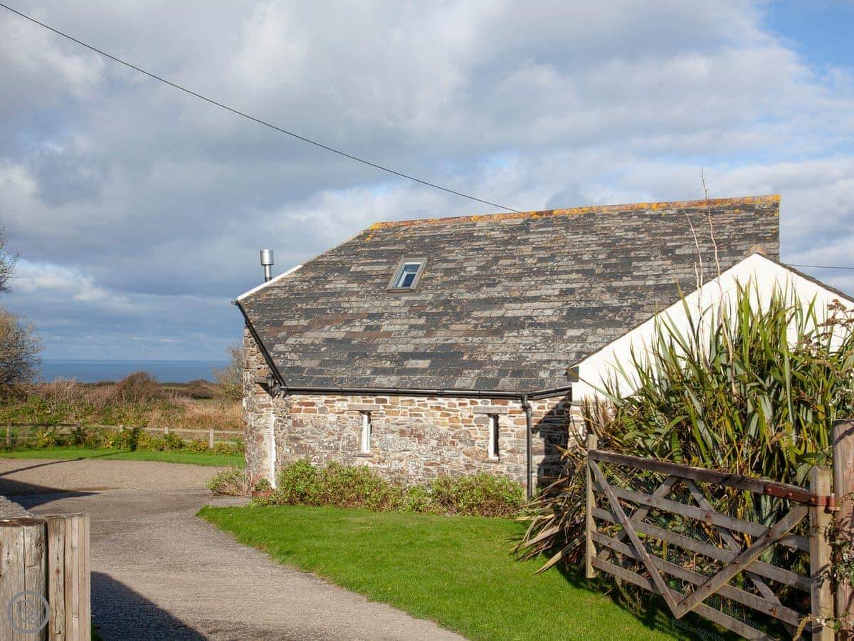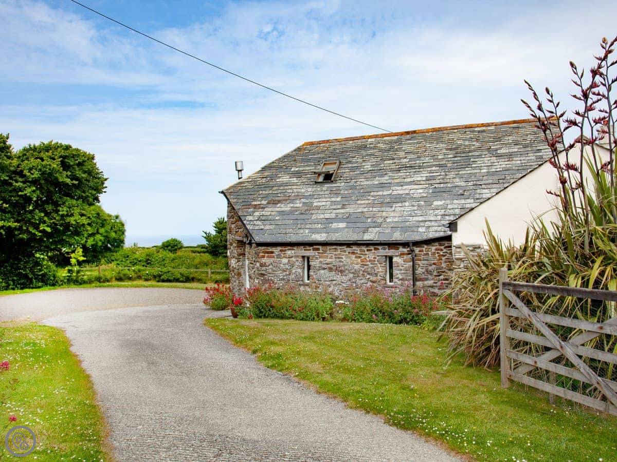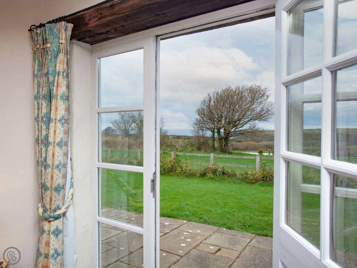 The Roundhouse is a detached cottage up near Crackington Haven in Cornwall. It's one of a few cottages converted from an old farm. The views from here are good, looking out over the fields to the sea.