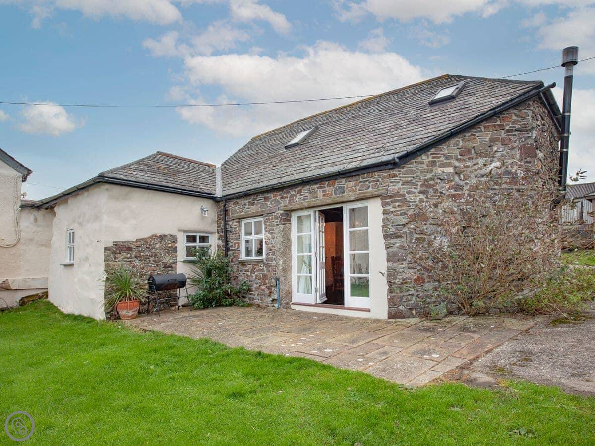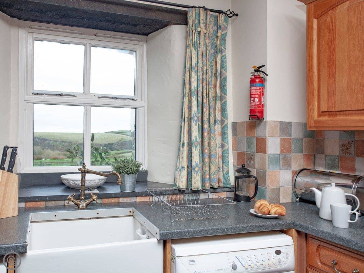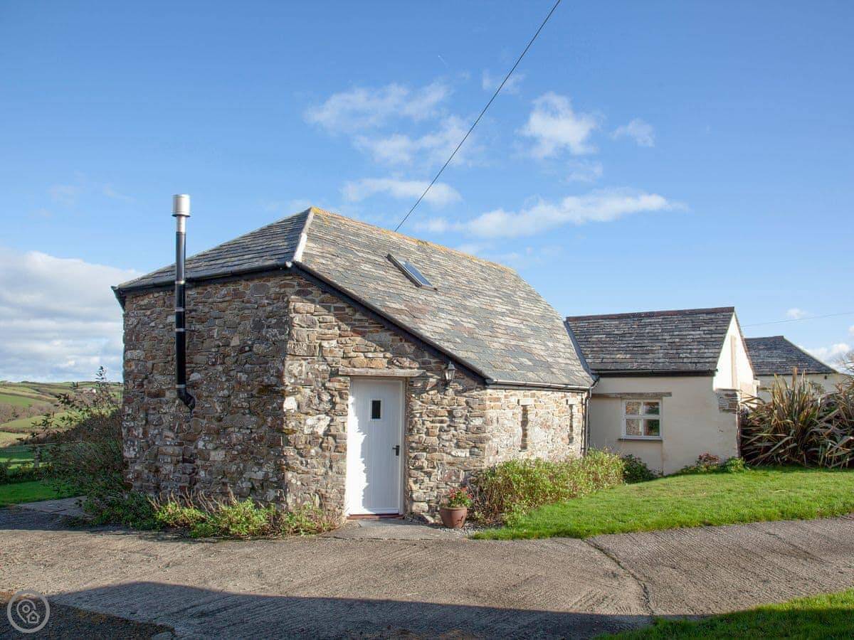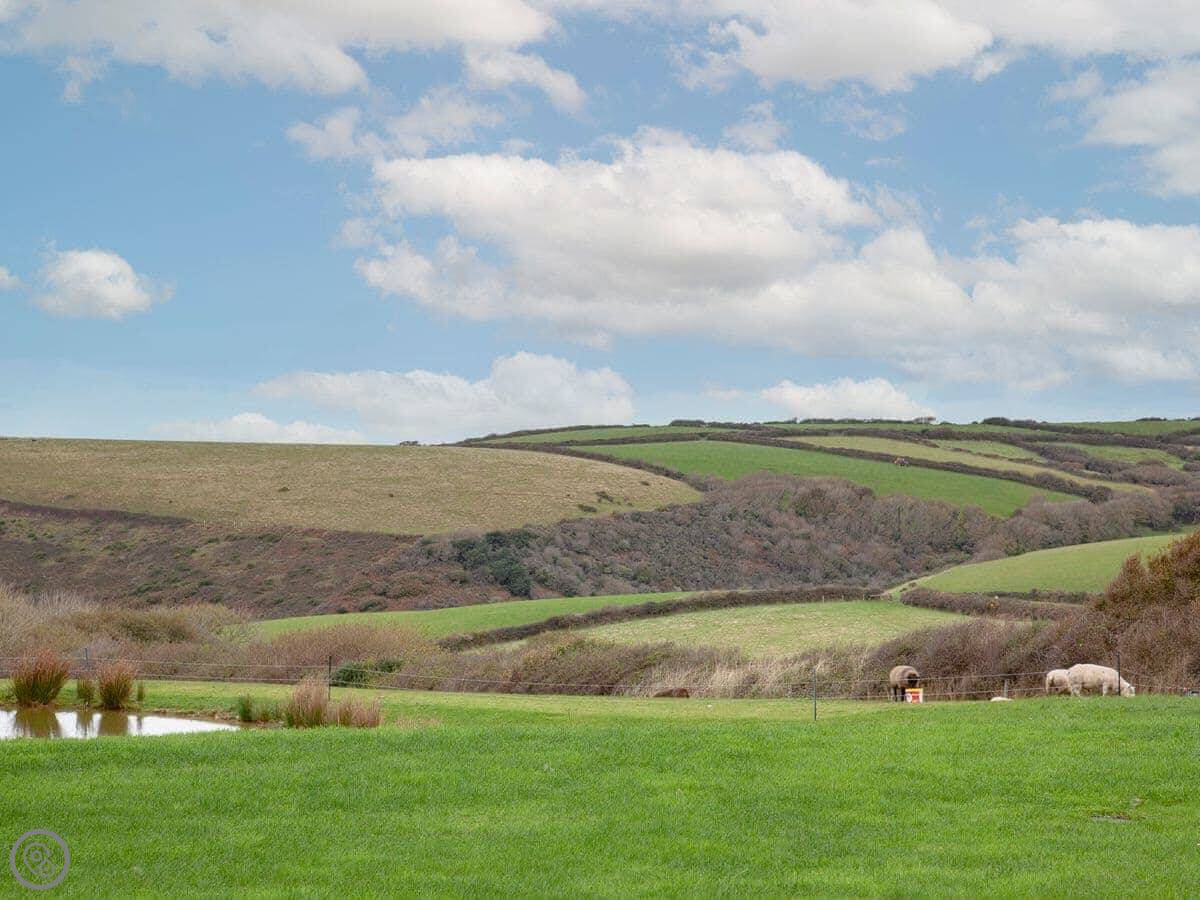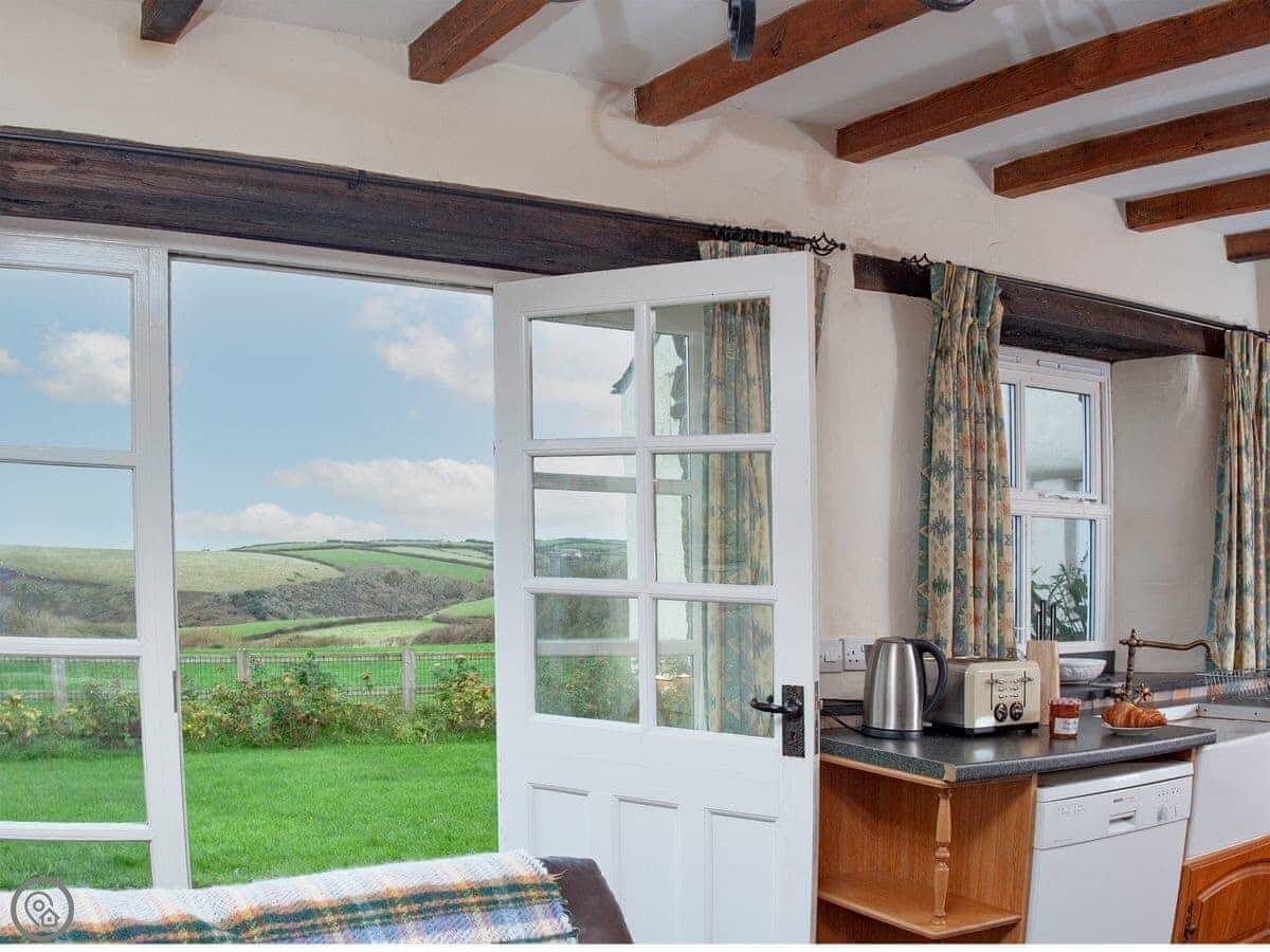 The Roundhouse is a detached cottage up near Crackington Haven in Cornwall. It's one of a few cottages converted from an old farm. The views from here are good, looking out over the fields to the sea.