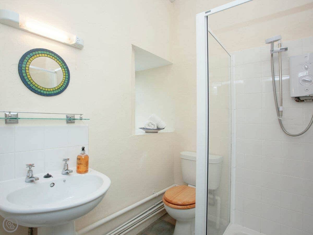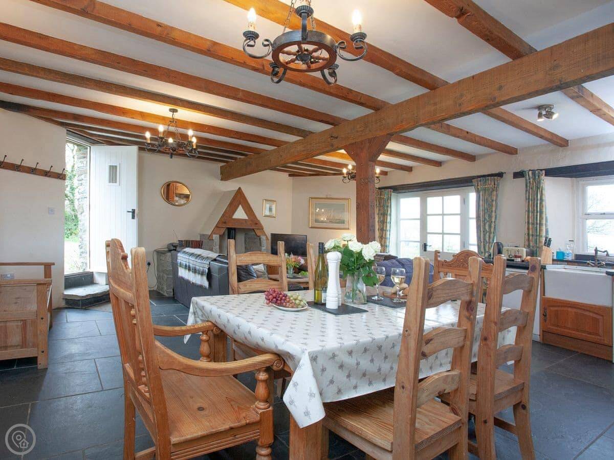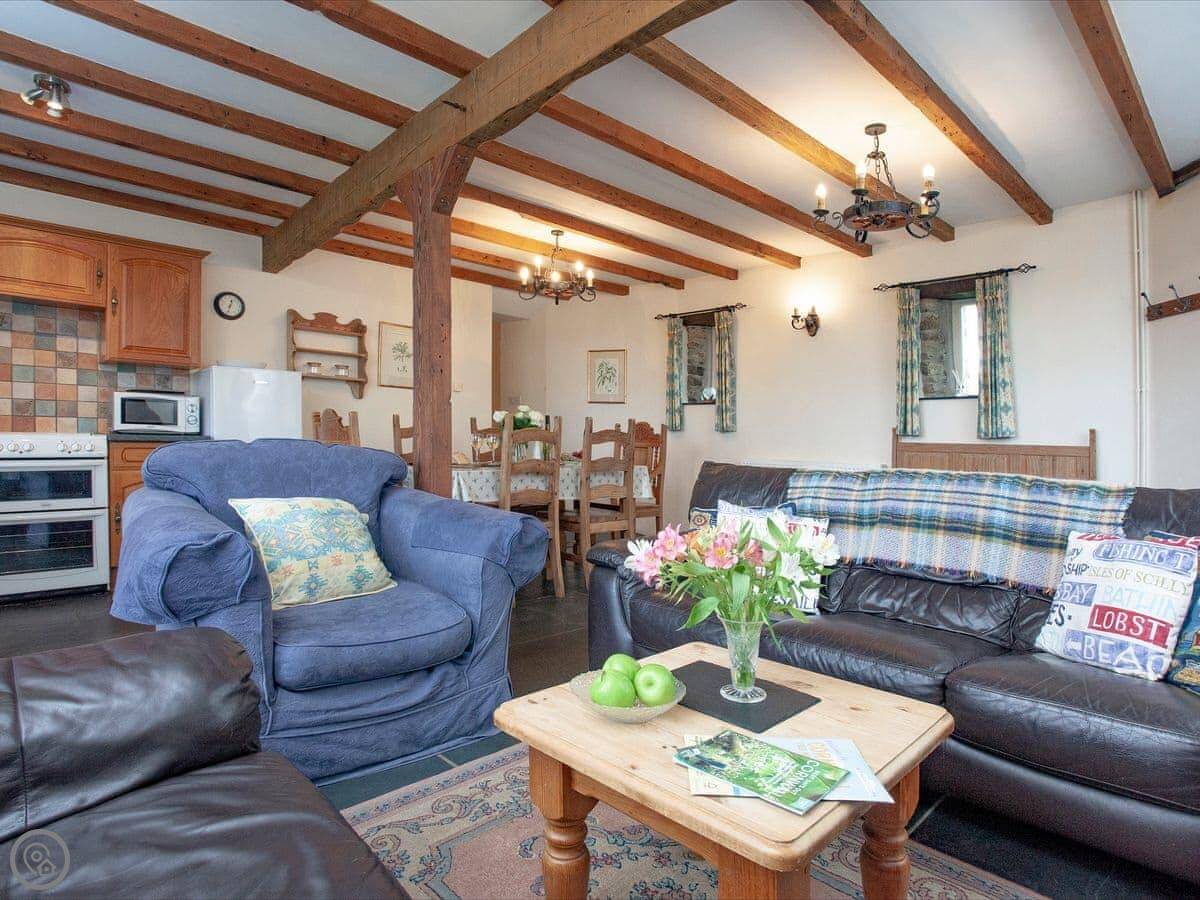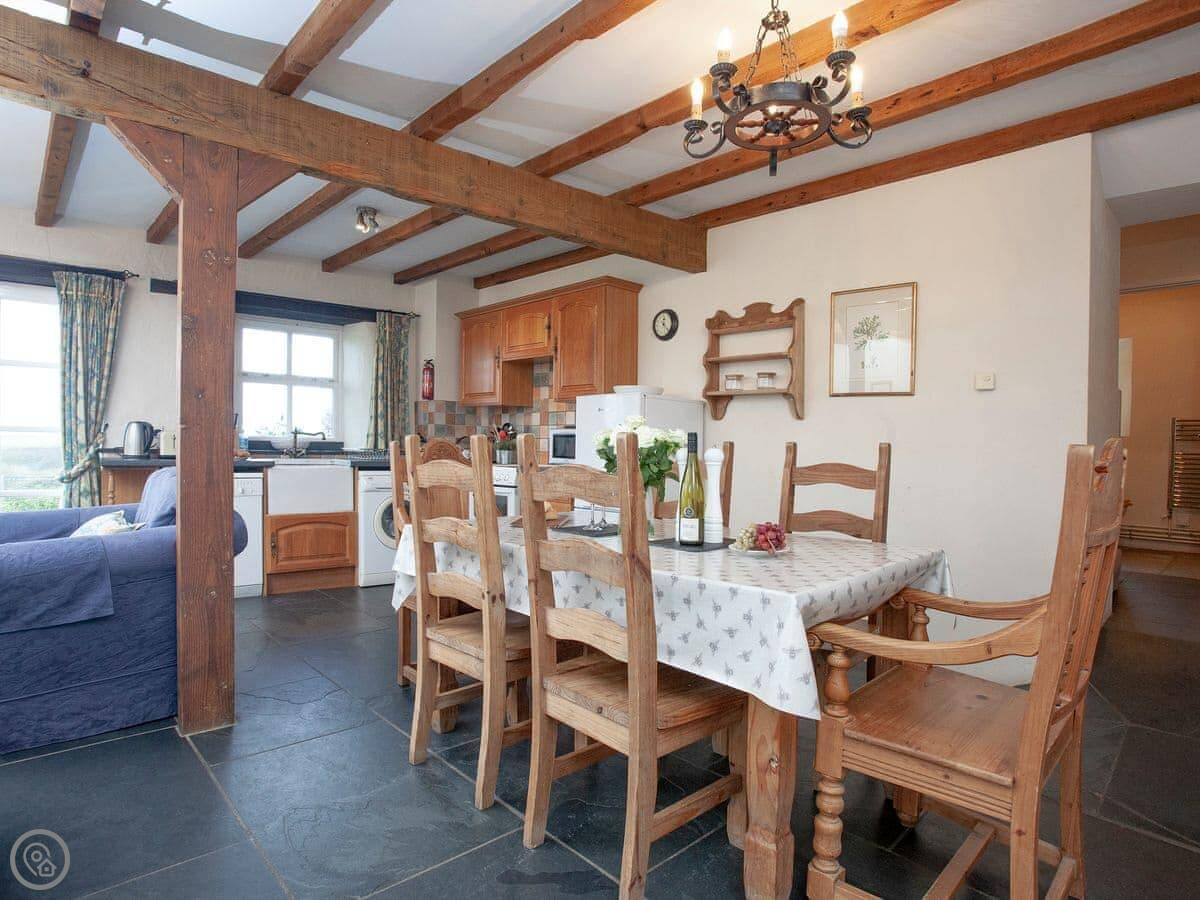 Crackington Haven is a couple of minutes drive down the hill. There's a beach, a shop, a cafe, and a pub right on the sand. Bude is about twelve miles up the coast for bigger shops and things like a surf school or an indoor pool.