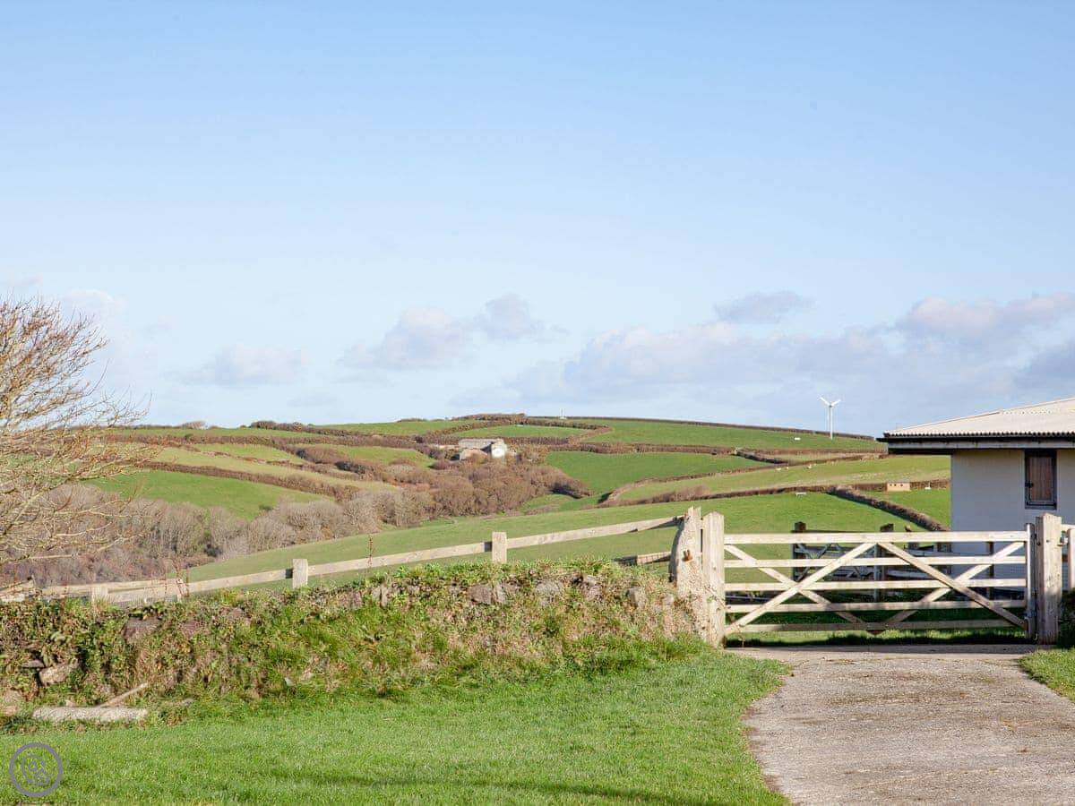 The Annexe is in Coxford, Cornwall. It's on our farm, next to our farmhouse. You'll see us coming and going, but your patio and garden bit are private. The views from here are very good, out over the fields to the sea.