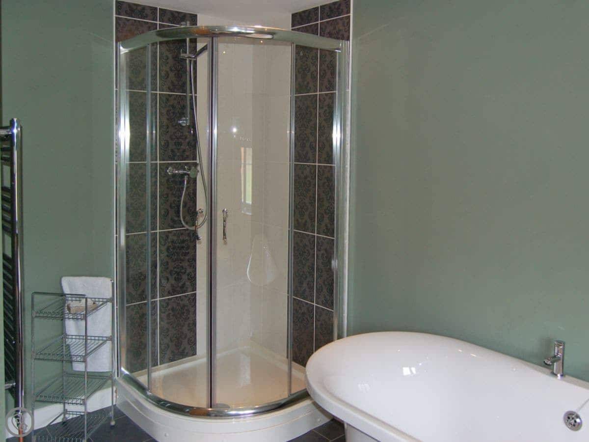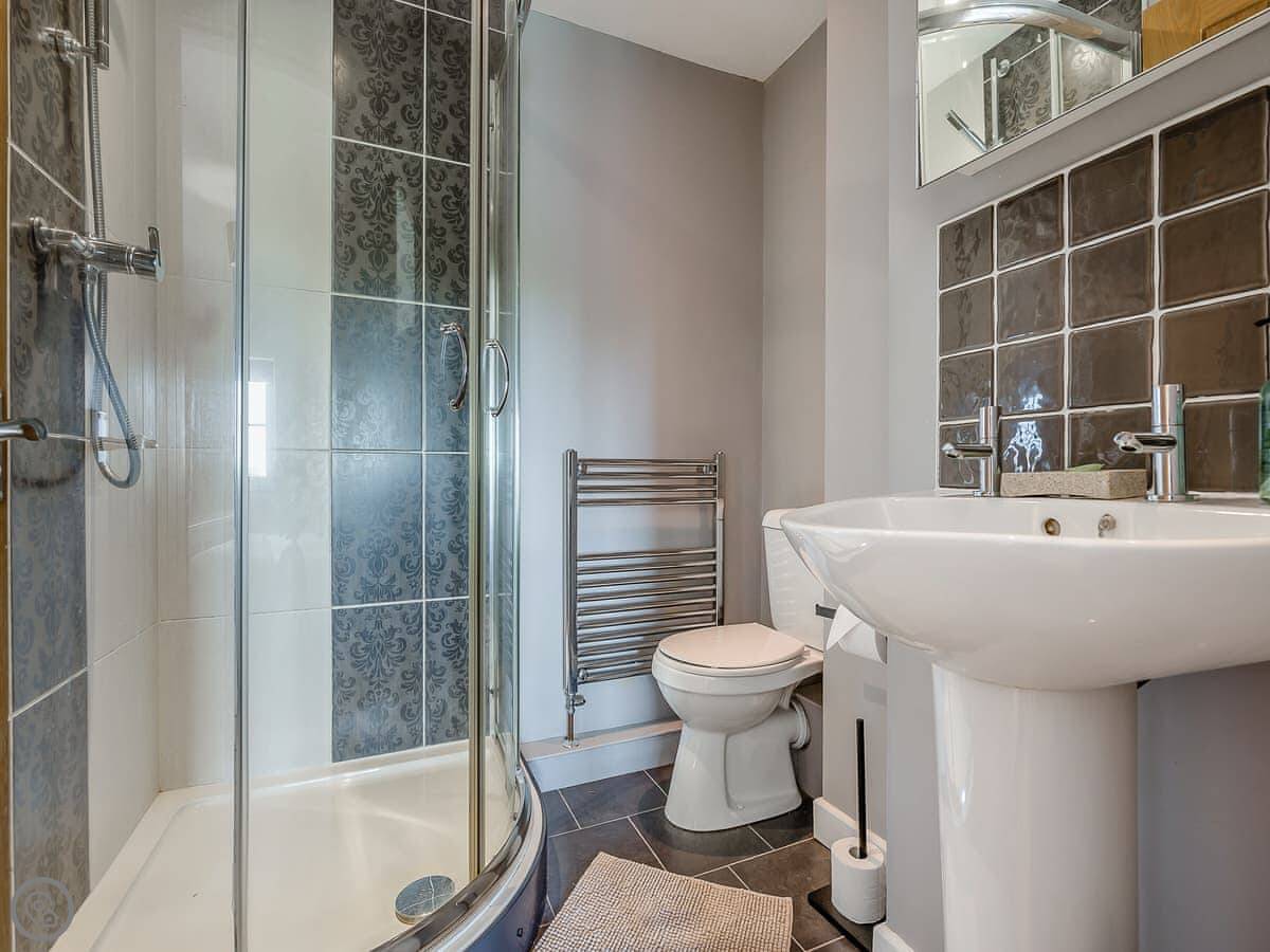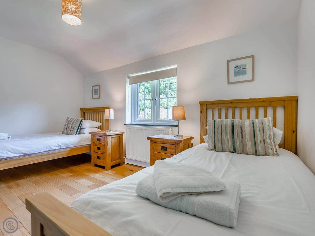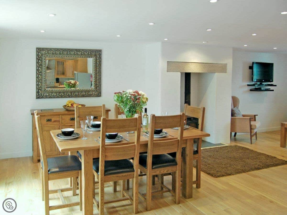 It sleeps six. Three bedrooms, two bathrooms, so that's helpful with a few of you. It's got a 5 Star rating which, in practice, means it's been finished to a high standard. Things like oak floors and furniture. All the bedrooms have TVs. It's clean and modern, but it's still a cottage.