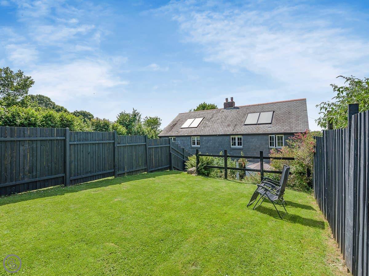 Home Park Farm Cottages B is here in Helstone, on the farm itself. It's one of two cottages side by side that we built. They're joined together, but you get your own garden. It's fully enclosed, so fine for dogs or kids. The view from the back is just fields.