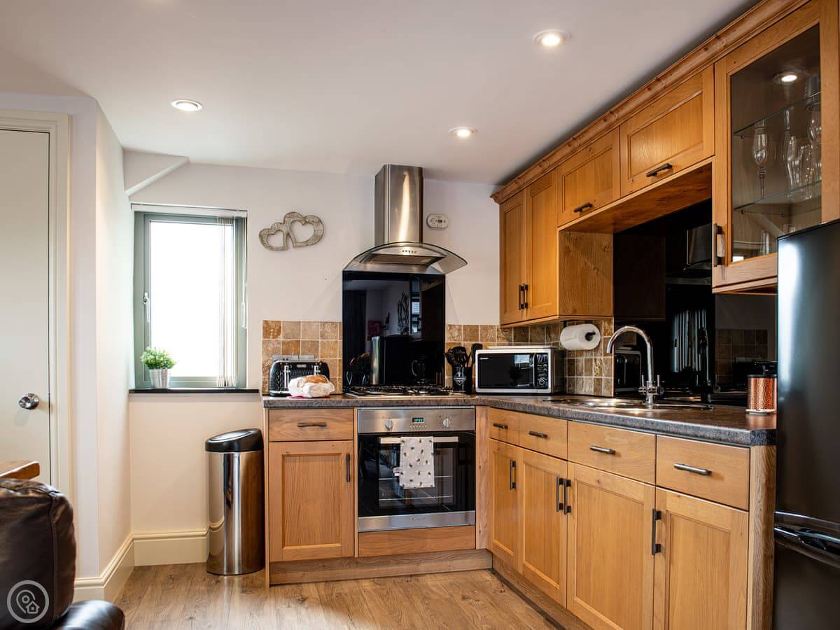It sleeps two, in one bedroom with an ensuite shower room. It's a 4 Star property, so it's comfortable and well-equipped. It's open plan downstairs.
