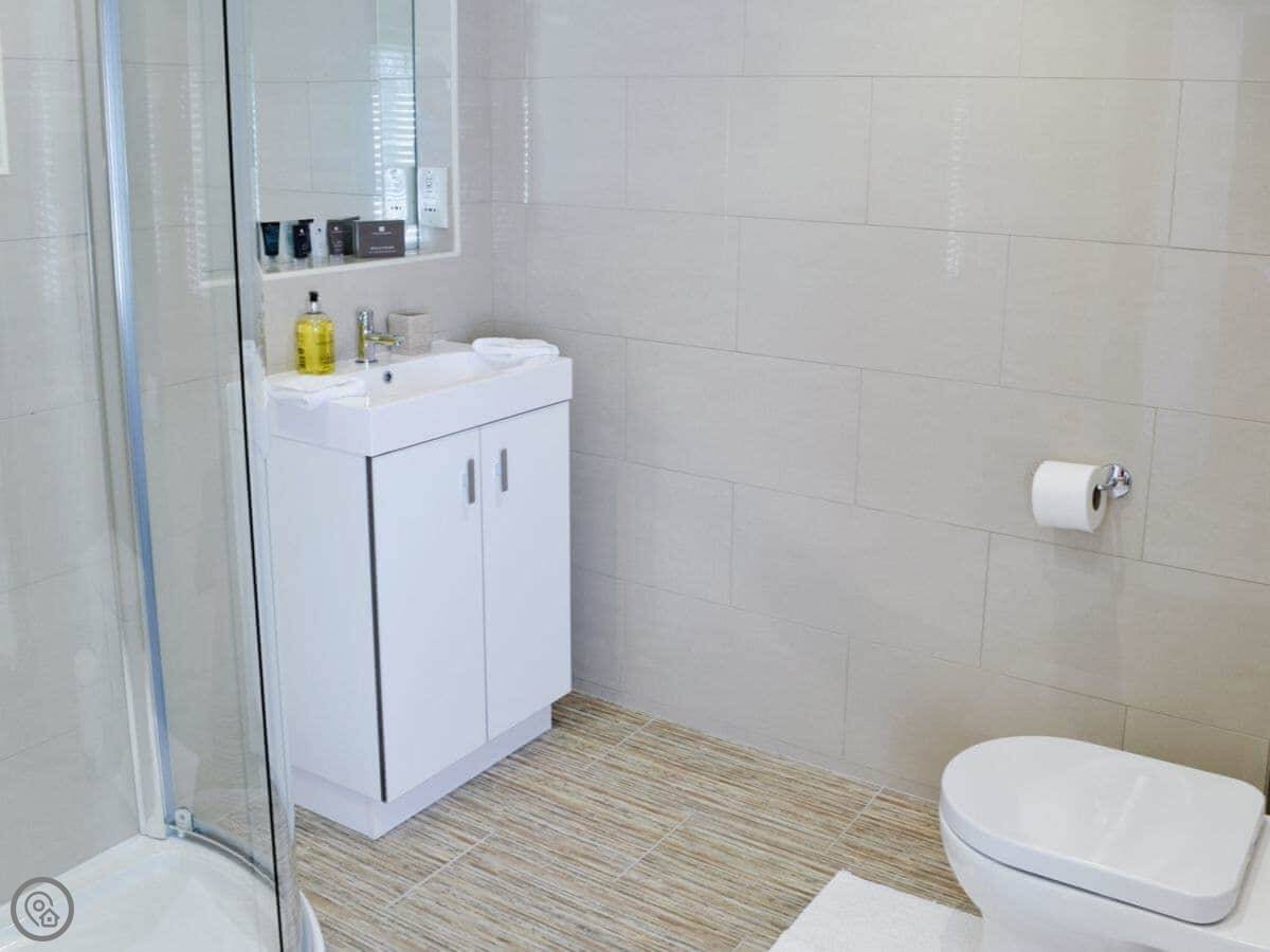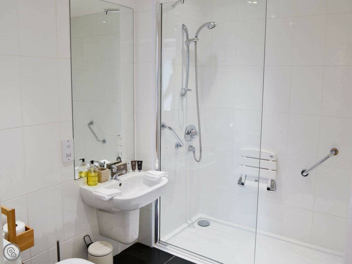 It sleeps eight, has four bedrooms and three bathrooms. One's on the ground floor, with a walk in shower, and there's wheelchair access to that part, which is helpful. The stairs are normal house stairs, not too steep.