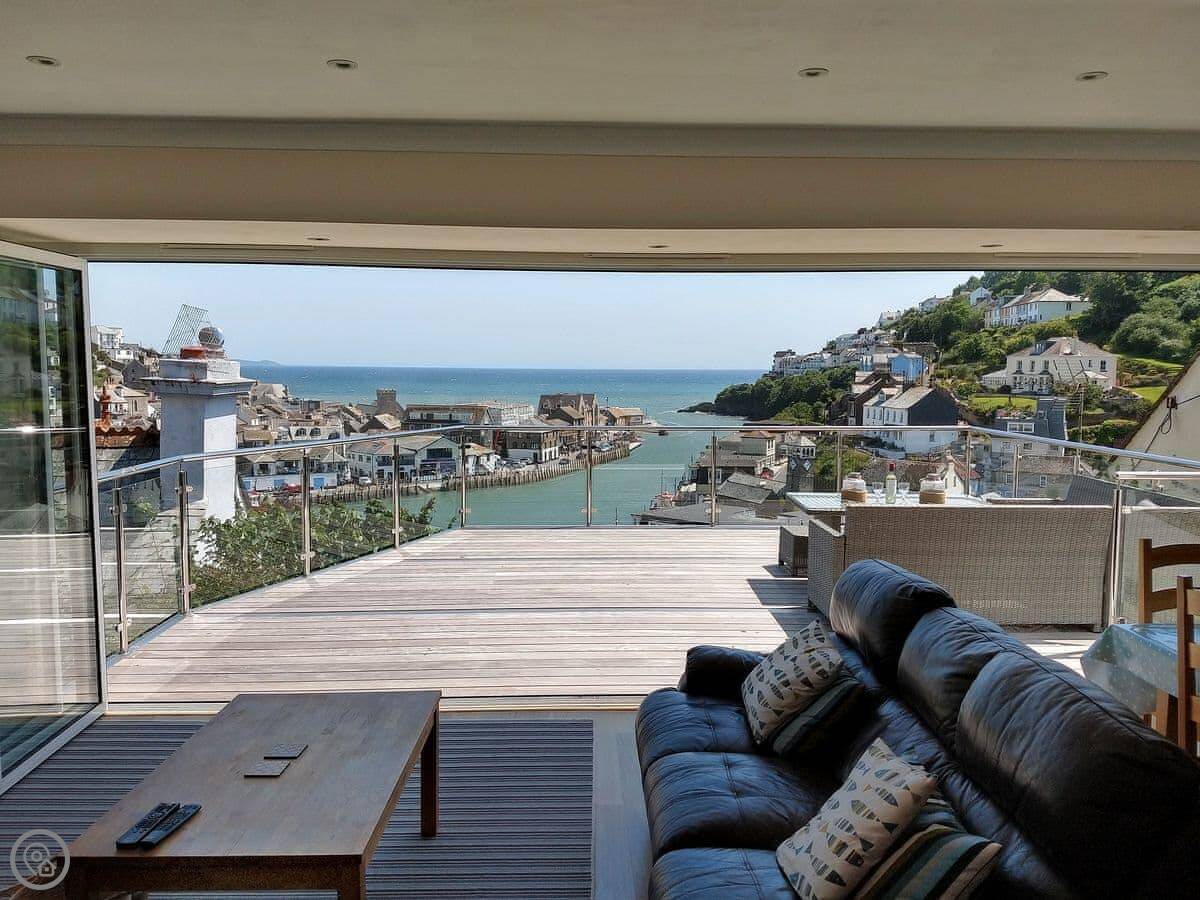 This detached, contemporary holiday home is located in the quaint, fishing village of Looe and has an outstanding view across the estuary and the sea. Looe has two beaches and many restaurants, pubs, cafes and shops. Deep sea fishing, watersports, woodland, river and coastal walks nearby. Plymouth and its National Marine Aquarium, Eden Project, Lost Gardens of Heligan, Padstow, Mount Edgecombe, Bodmin Moor and Polperro are easily reached. Shop and pub 150 yards.