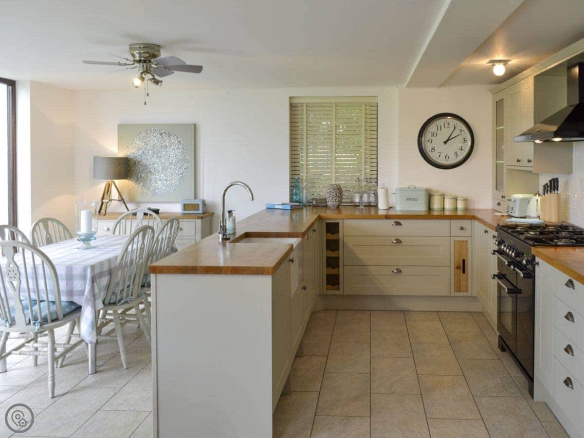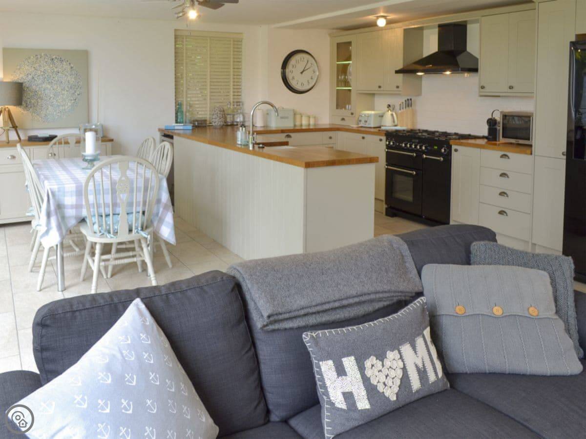 It sleeps six. Three bedrooms, each with its own bathroom. That’s useful. It's got a 5 Star rating, which means it's comfortable and well-finished. One well-behaved dog is allowed.
