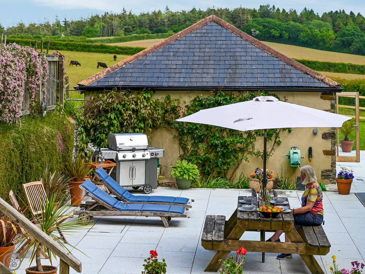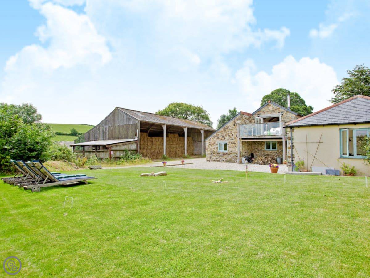 Outside, there's a decked area for eating, a lawn, and a BBQ. You can play croquet on the grass. There's an electric vehicle charger on site.