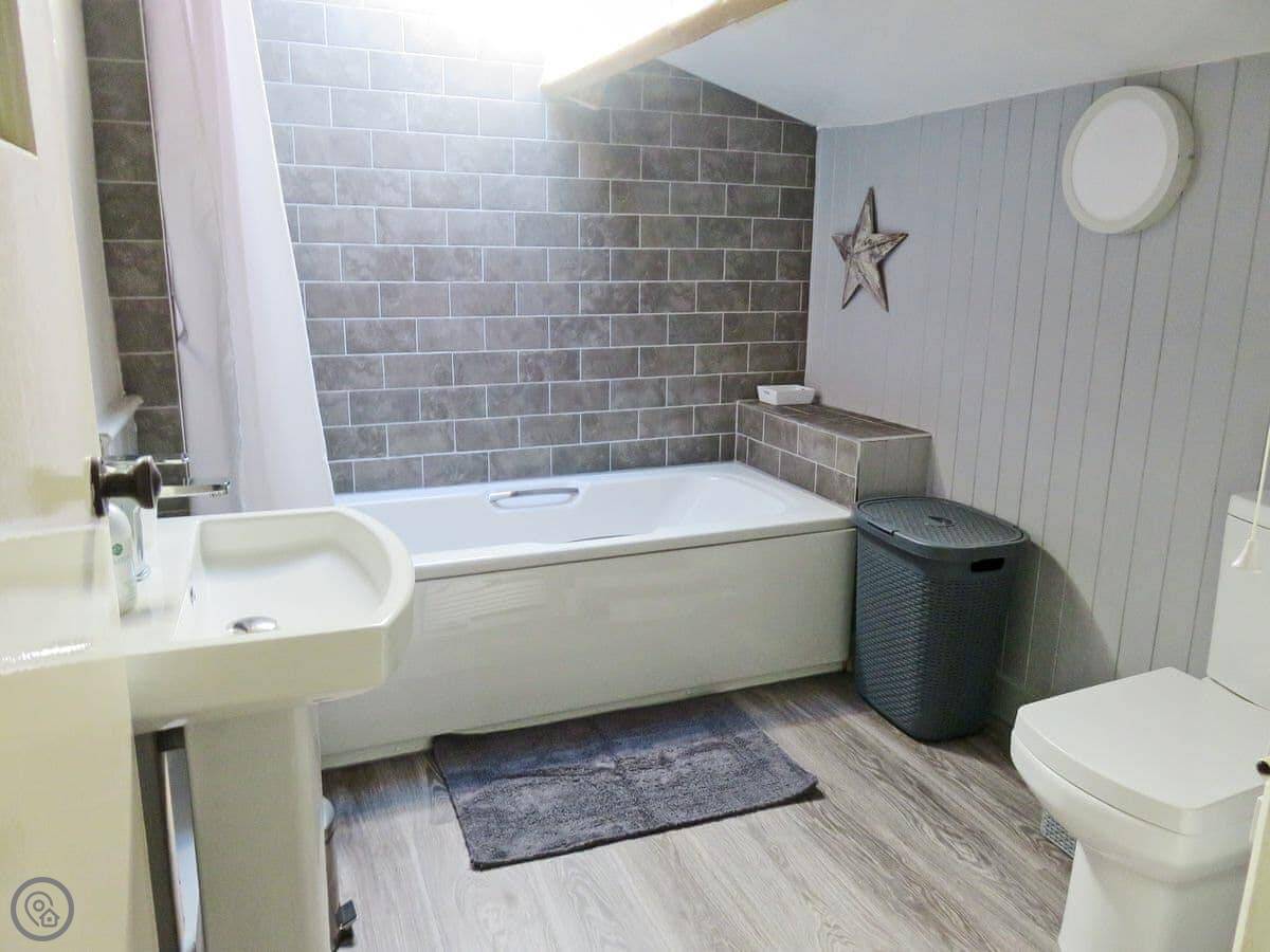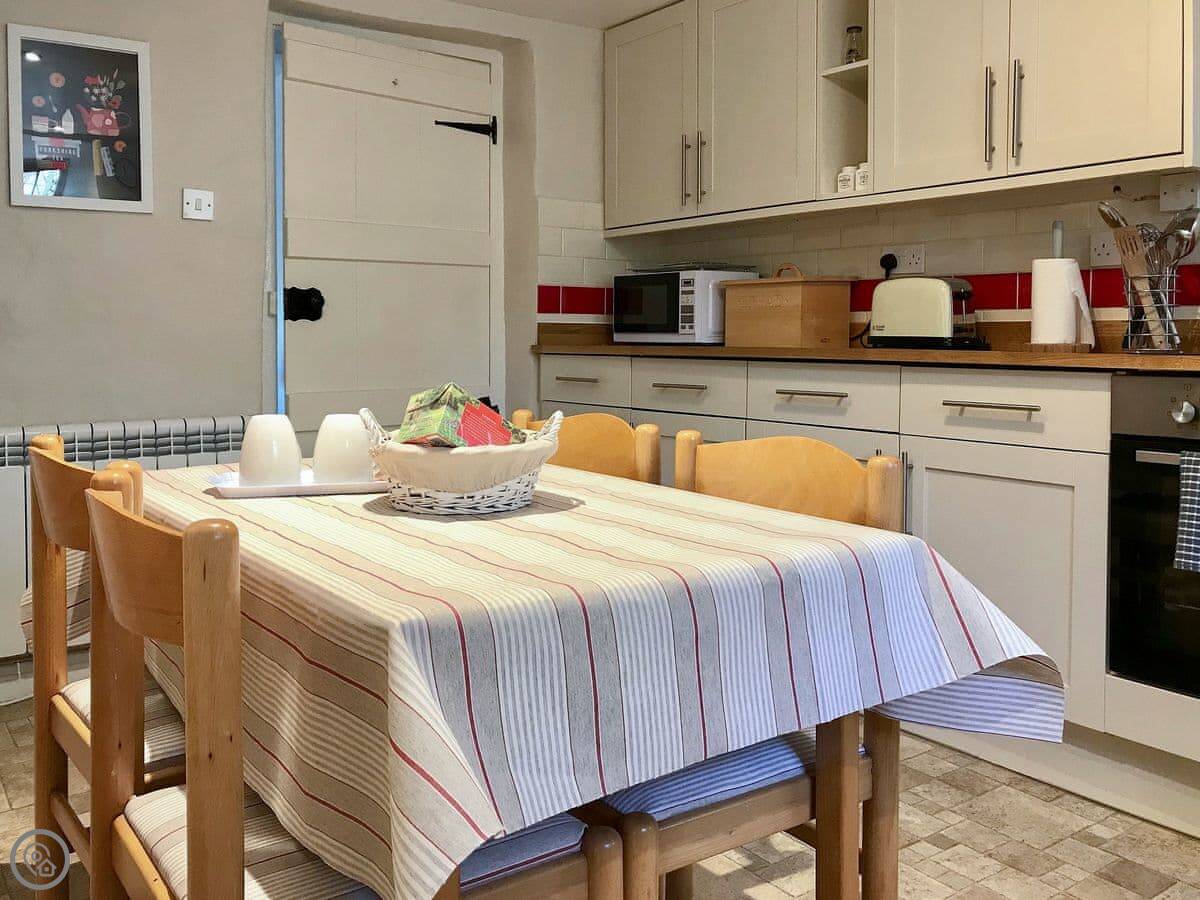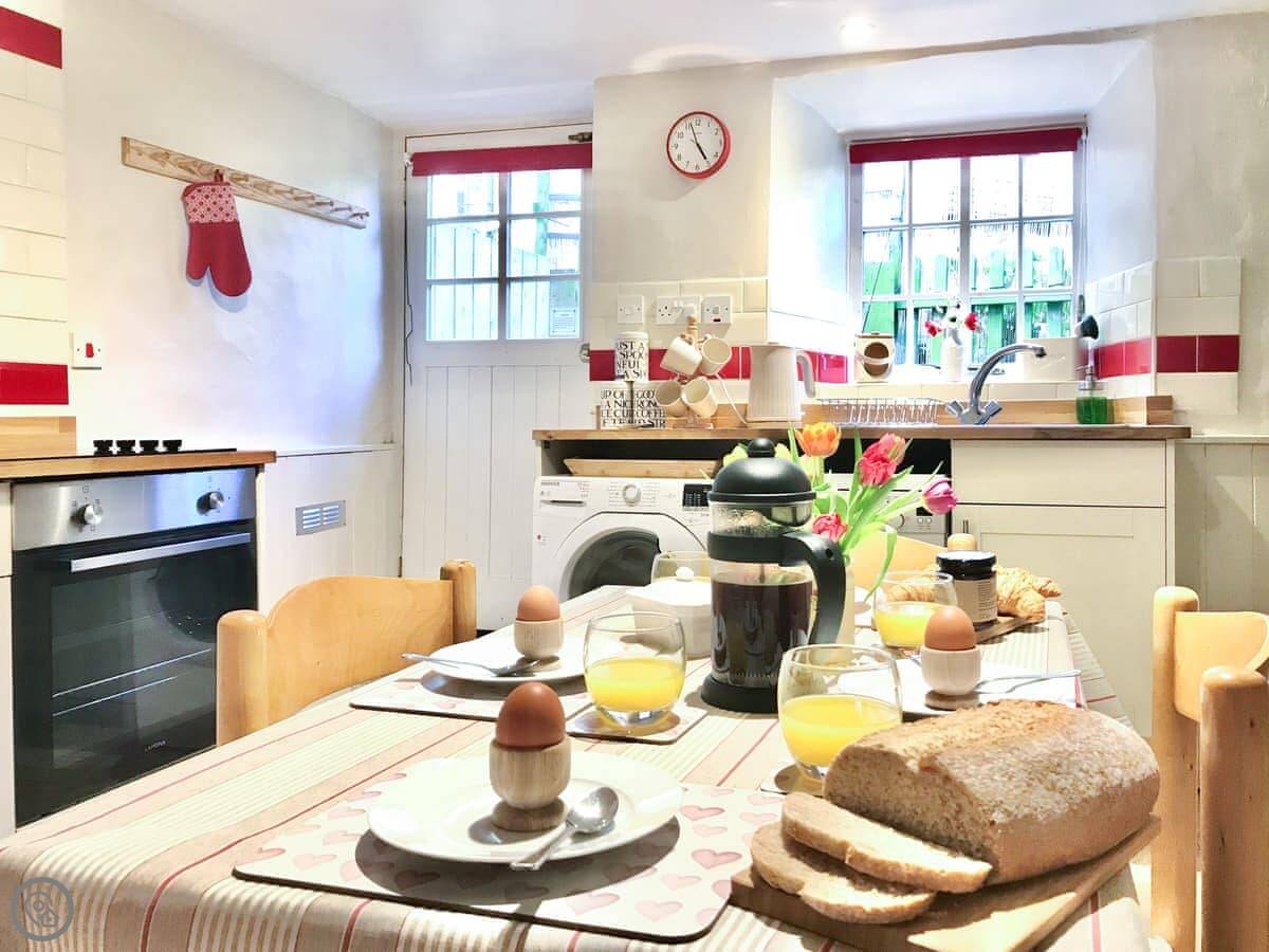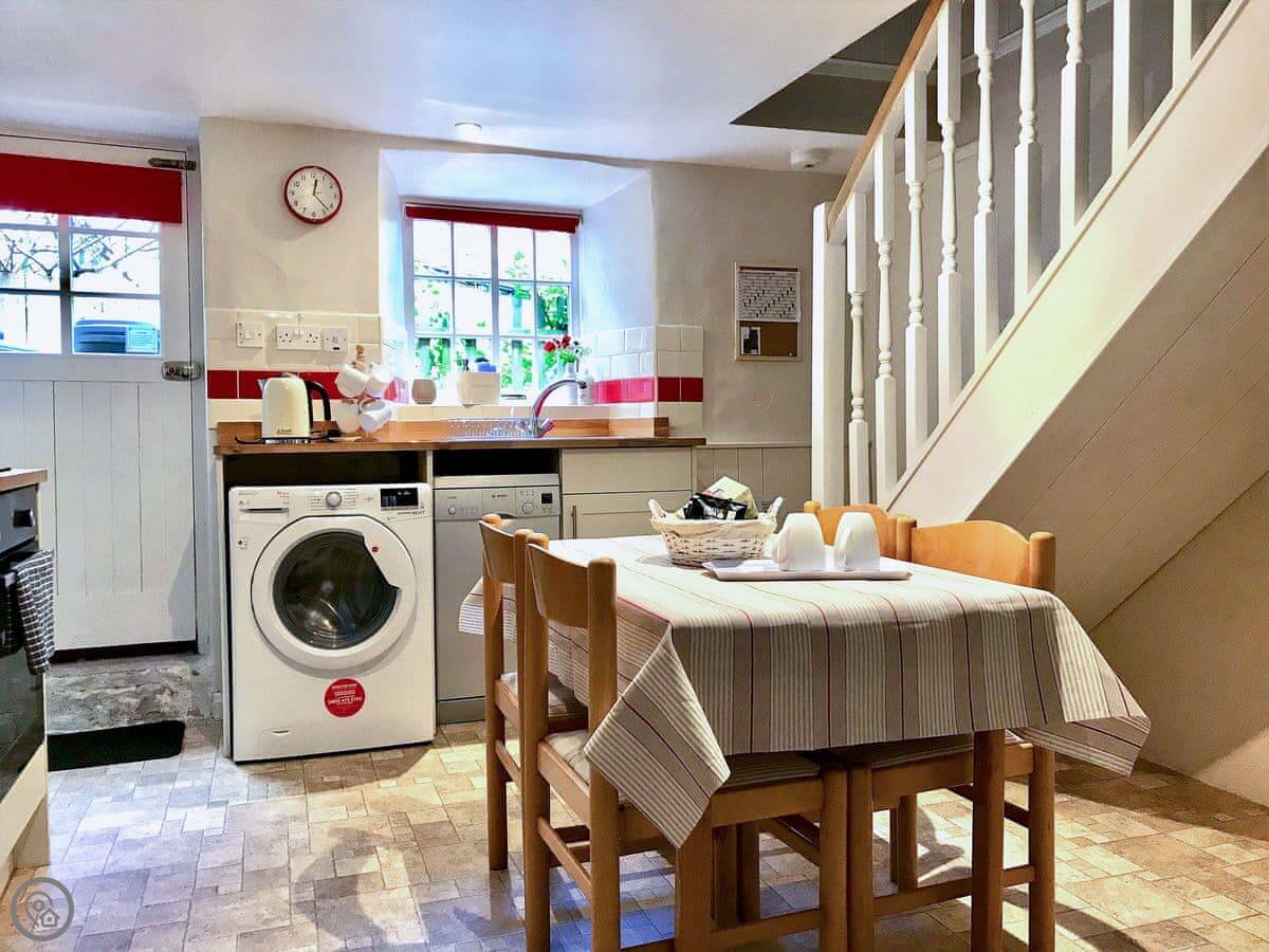 In terms of facilities, it's got most things you'd need. Washing machine, dishwasher, TV, wifi. Bedding and towels are included. You can bring up to two dogs. There's a highchair and a stairgate stored there if you need them.