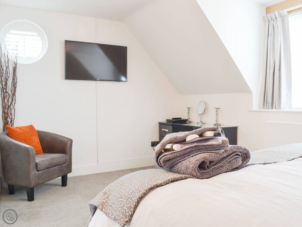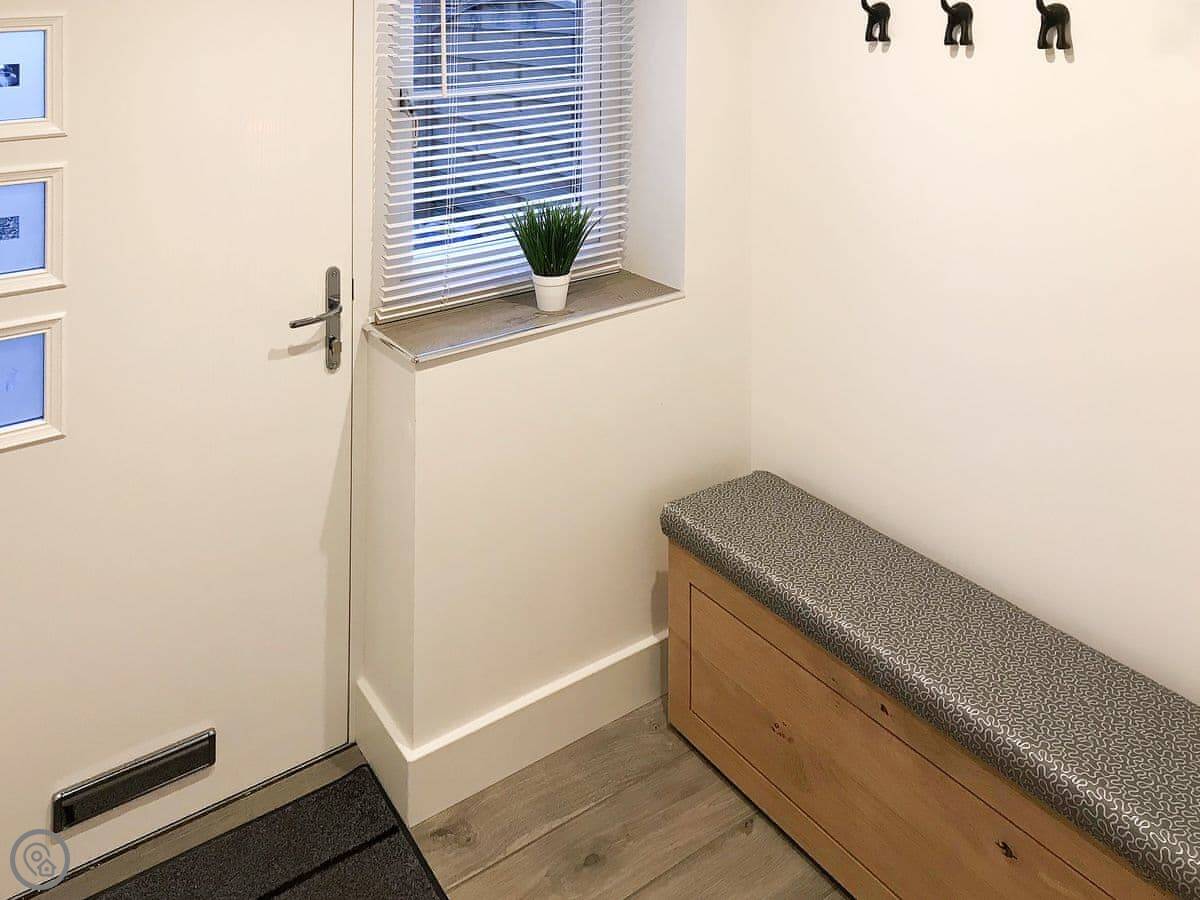 Inside, it's all open plan downstairs. There's a proper kitchen with a dishwasher and washing machine. Parking is right outside. We allow up to two dogs. Bedding and towels are included.