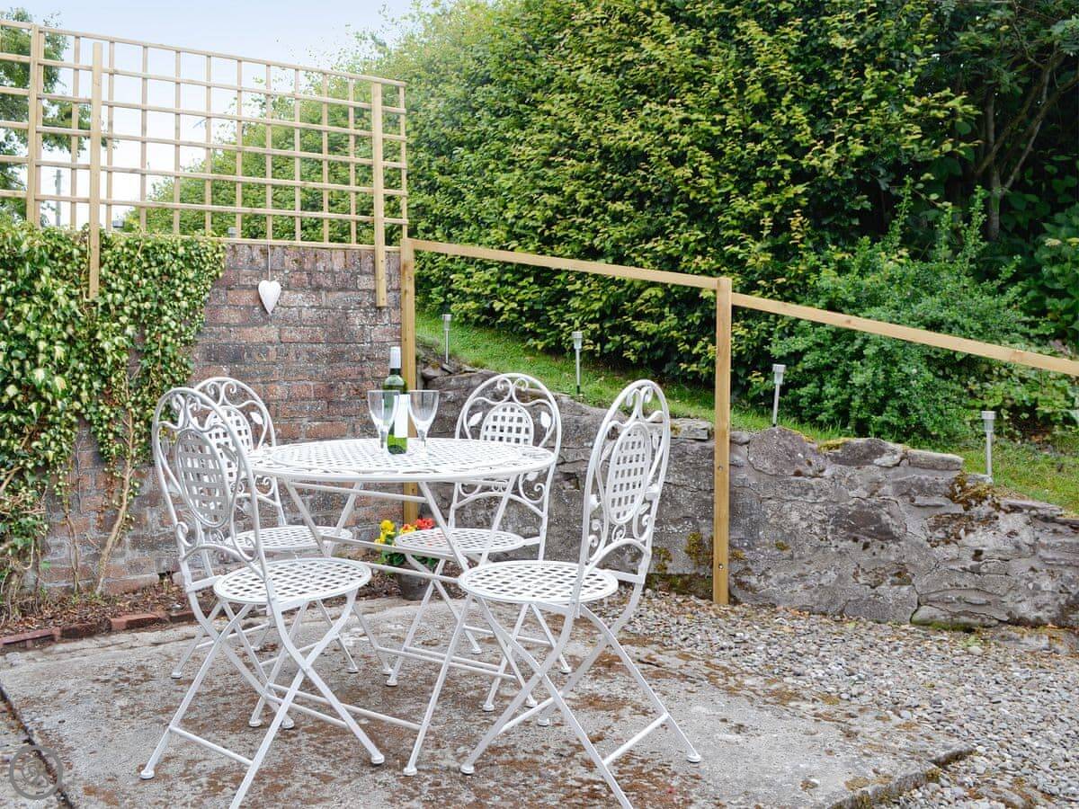 The garden slopes up from the patio. It's sunny and sheltered. You get your own parking space.